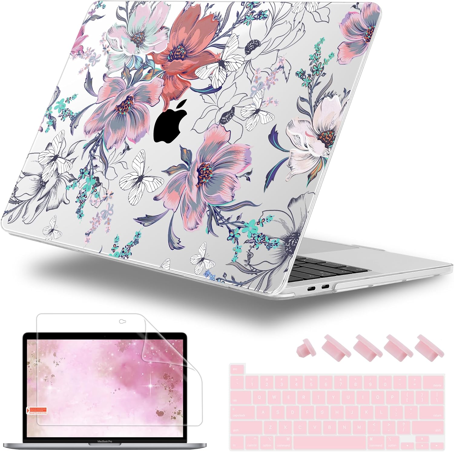 Case for MacBook Pro 13 inch with/Without Touch Bar (2016-2022, M2 A2338 M1 A2289 A2251 A2159 A1989 A1706 A1708), Hard Shell + Keyboard Cover + Dust Plug, Floral C319