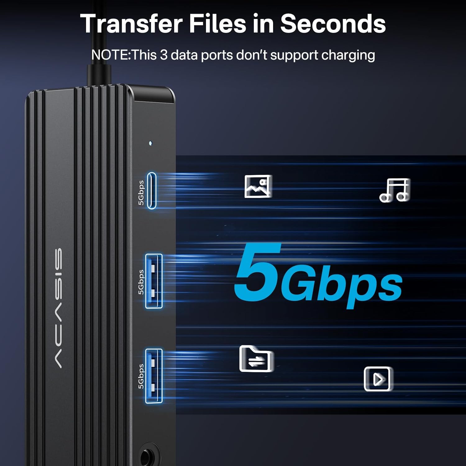 - [8 in 1 docking station] ACASIS This 8 in 1 multifunctional docking station can be a great way to increase your office productivity with dual HDMI +VGA+ PD 100W charging port, a USB-C port up to 5Gbps, two up to 5Gbps USB A ports, and 3.5MM Audio.Versatile, all-in-one laptop docking station dual monitor for efficient work at home and in the office.