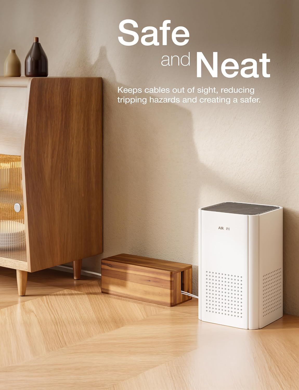 - High-Quality Acacia Wood: Crafted from durable acacia wood with a smooth natural finish, this cable management box is built to withstand daily use while adding understated sophistication to any space. Its generous 16" L x 6.5" W x 6"H size accommodates most power strips, surge protectors, and excess cables—keeping your setup tidy without taking up unnecessary room.