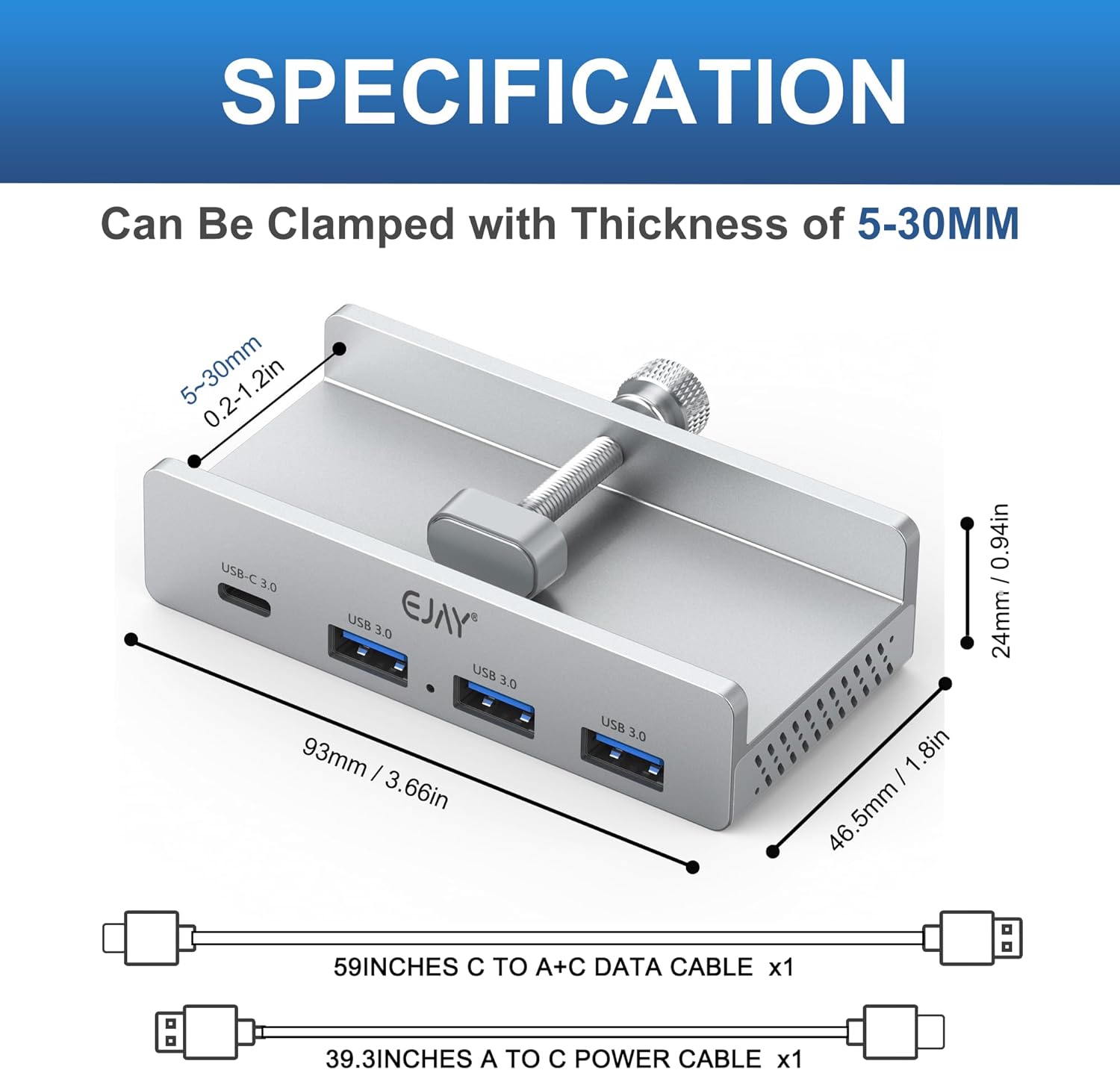 - 【High Speed Data Transfer 】: Clamp hub is equipped with USB 3.0 high speed interface, which is 10x faster data transmission speed than USB2.0