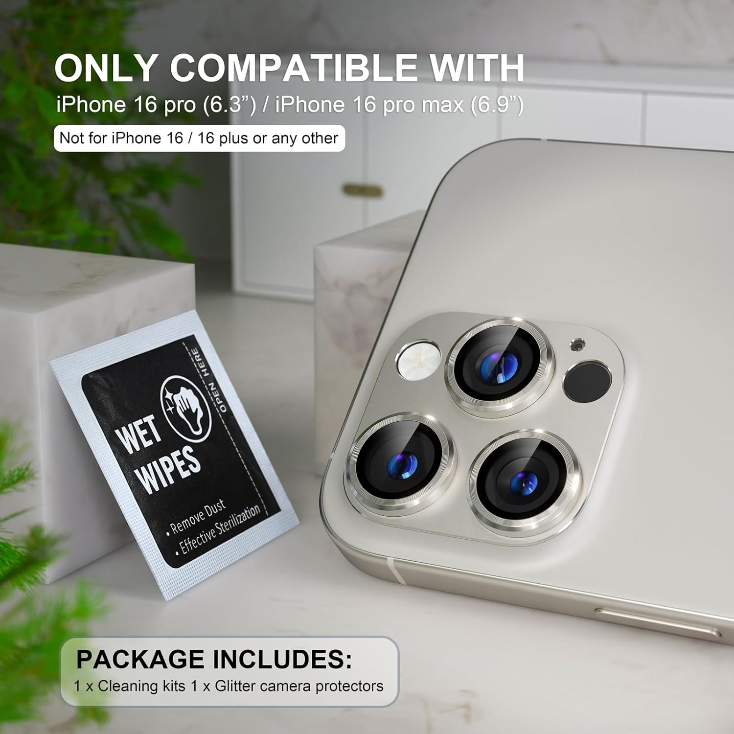 - Camera Lens Protector: We present new upgrade smartphone rear camera lens Protectors which are perfectly compatible for iPhone 16 Pro Max 6.9-inch & iPhone 16 Pro 6.3-inch 2024 released. The package contains a set of delicate camera lens protectors and a set of cleaning kits. Please confirm the iPhone models carefully before purchase.