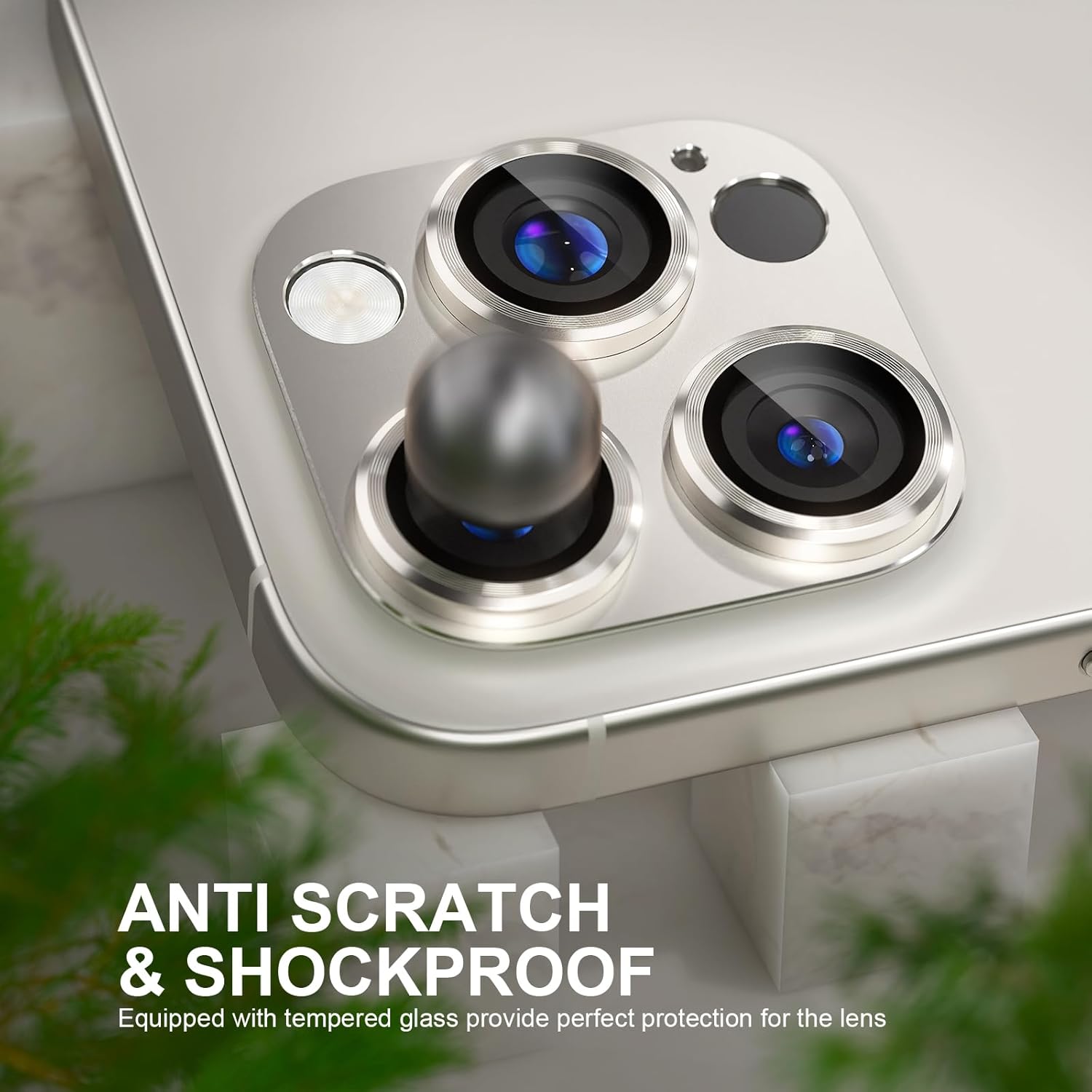 Choiche Compatible for iPhone 16 Pro/iPhone 16 Pro Max Camera Lens Protector, Bling Camera Cover with 9H Tempered Glass Lens Screen Protector Metal Ring Accessories (Titanium Natural)