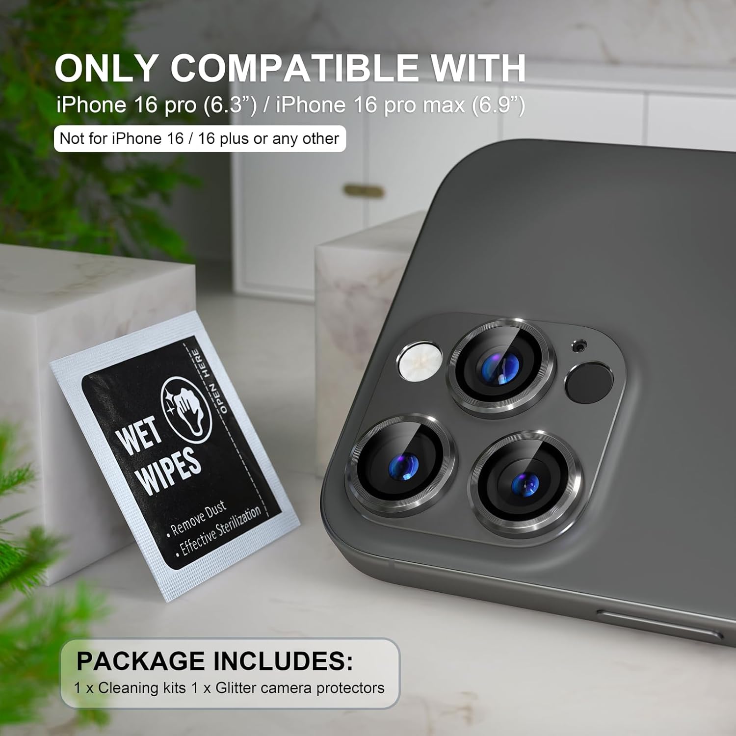 - Camera Lens Protector: We present new upgrade smartphone rear camera lens Protectors which are perfectly compatible for iPhone 16 Pro Max 6.9-inch & iPhone 16 Pro 6.3-inch 2024 released. The package contains a set of delicate camera lens protectors and a set of cleaning kits. Please confirm the iPhone models carefully before purchase.