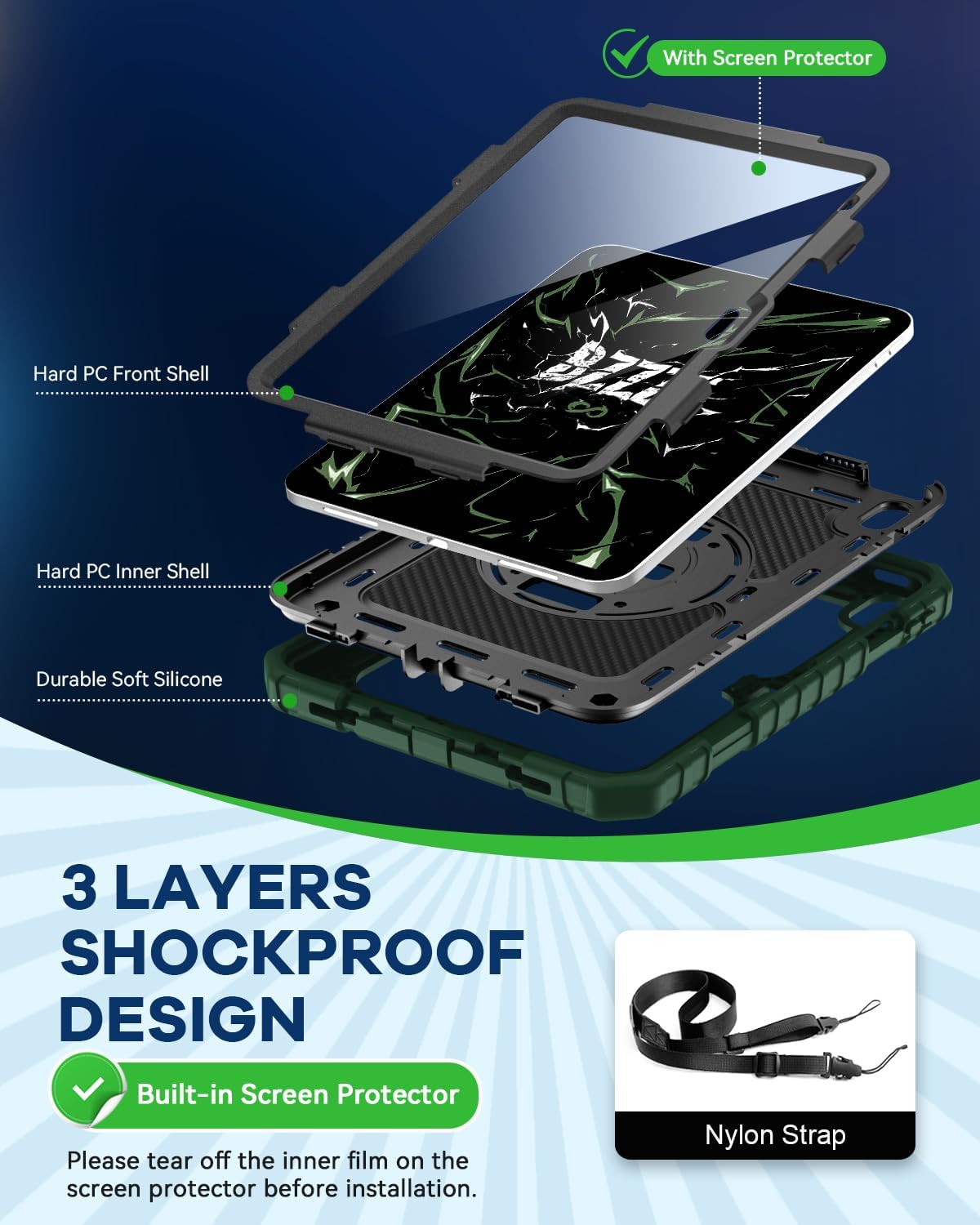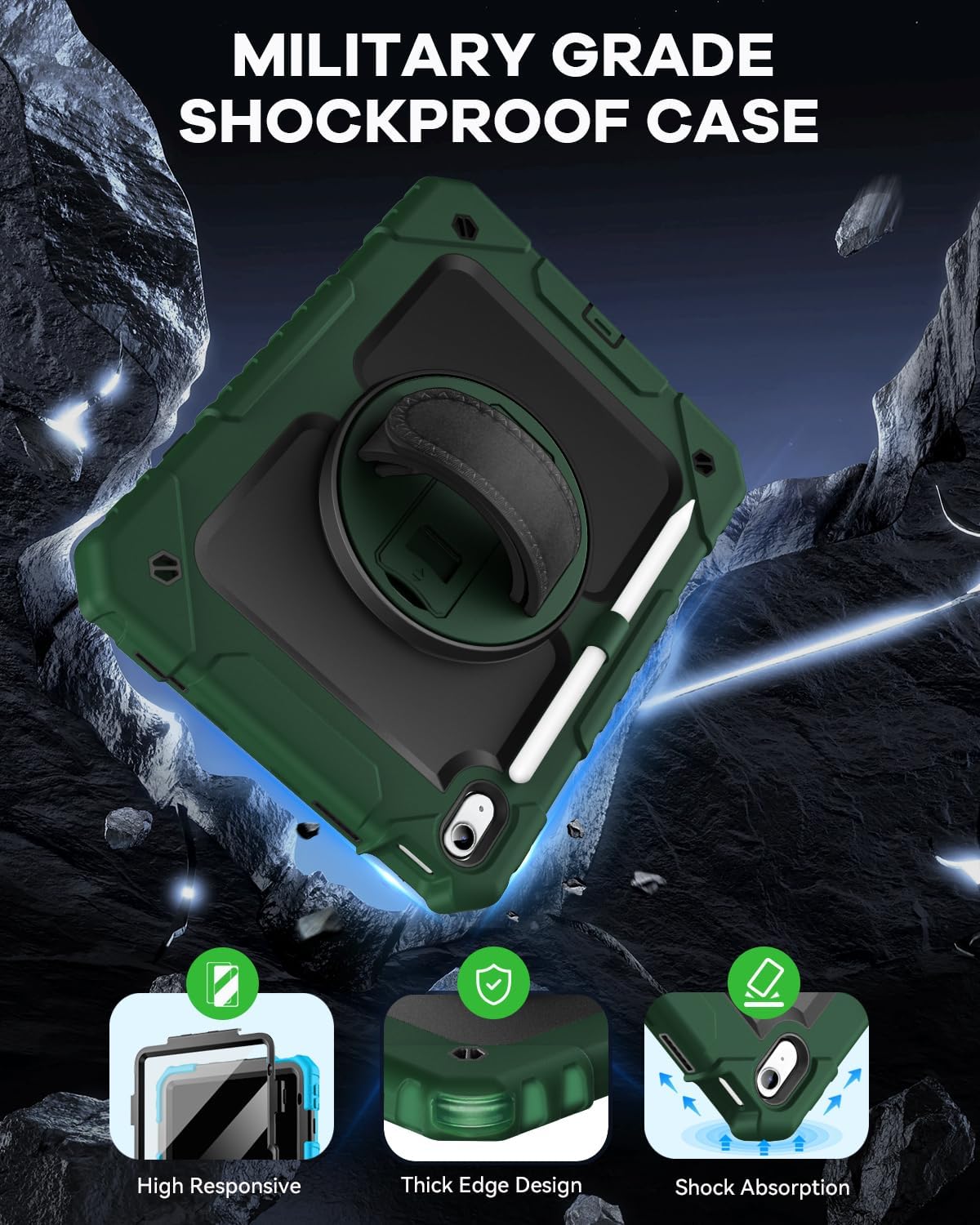 Cantis Case for iPad 11-inch (A16) 2025/ iPad 10th Generation 2022 (10.9 inch) with Screen Protector, iPad 11th Case with 360 Degree Rotating Stand/Shoulder Strap/Pencil Holder, Alpine Green