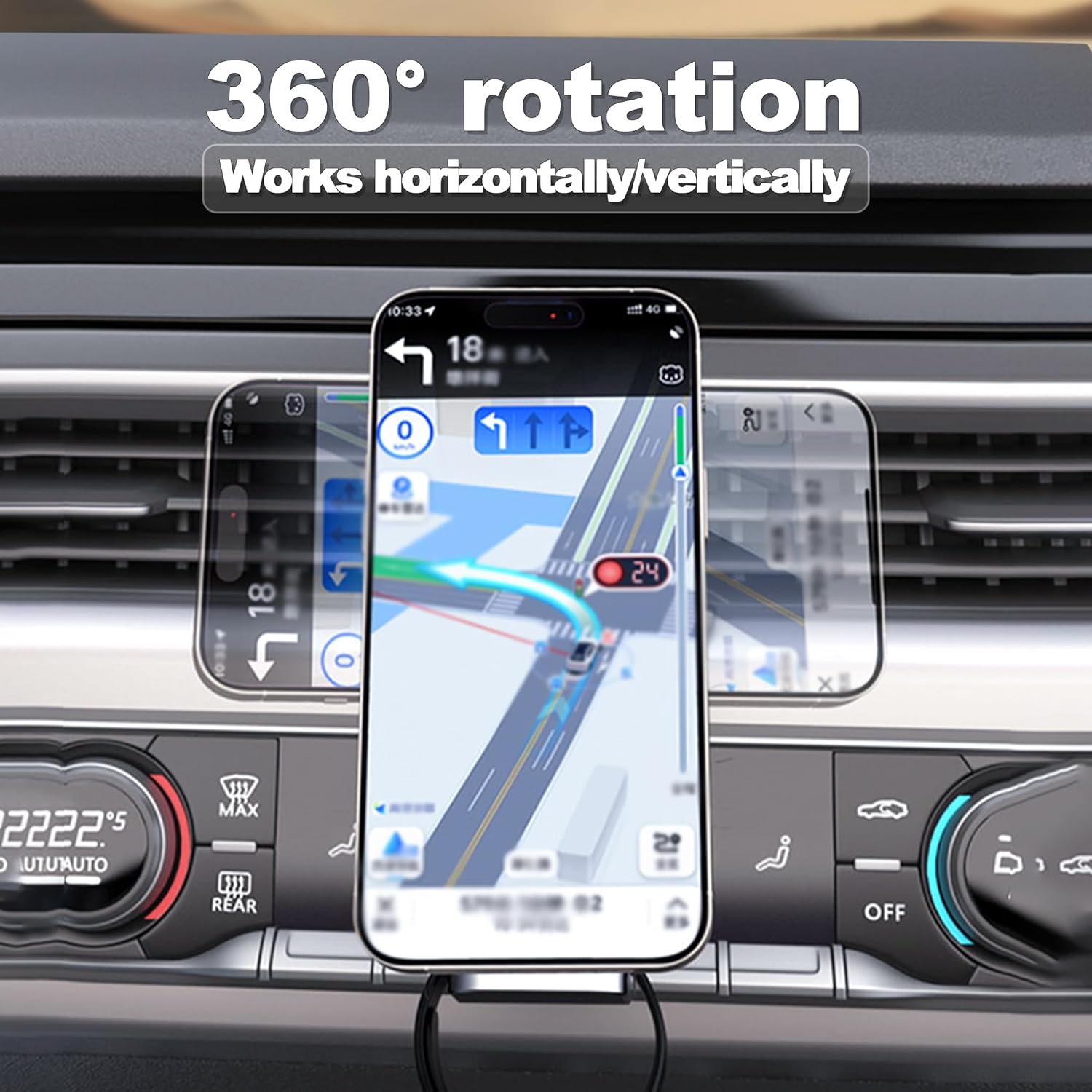 - Secure Magnetic Lock: This Qi2-enabled magnetic car mount has a strong magnetic connection that provides a stable hold even on bumpy roads. Whatsmore, the 3-in-design also can maximize save space and solve the problem of messy cables, just place your devices on the car phone mount charger, and enjoy fast wireless charging on long-distance travel in the car.