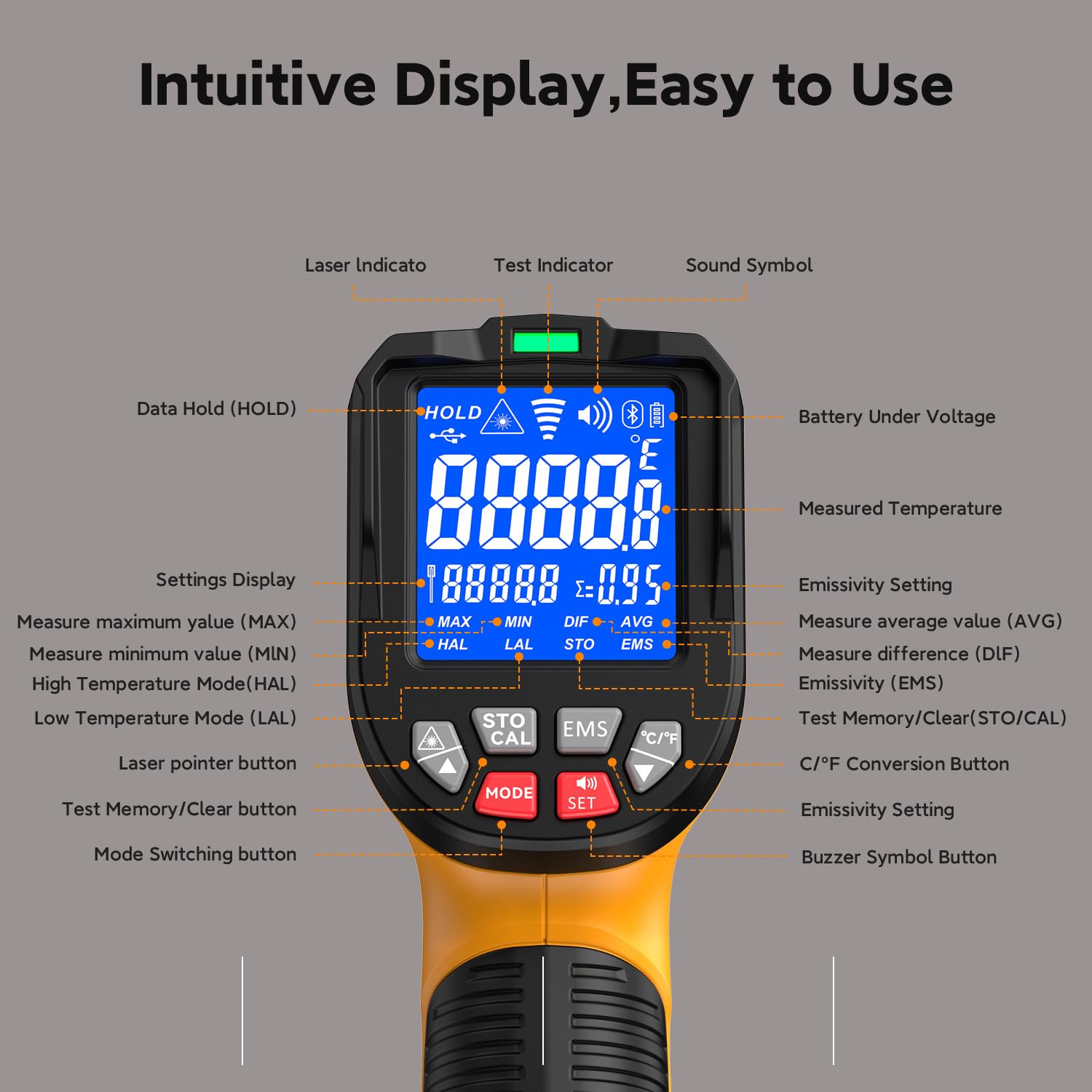- Extensive Temperature Range: This infrared thermometer accurately measures temperatures from -58°F to 3992°F (-50°C to 2200°C), making it suitable for various applications ranging from low to high temperatures, such as industrial furnaces, metal processing, and home cooking.