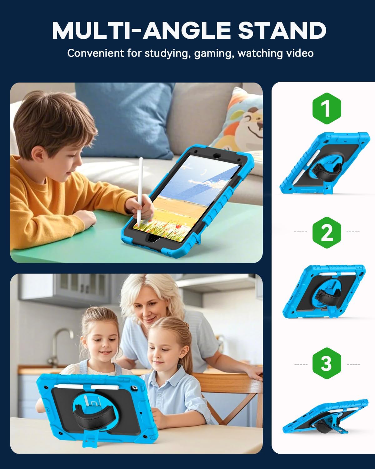 - Built-in Screen Protector: This case for iPad 9th generation kids made of durable hard PC & silicone, 3-layer full body protection structure with SCREEN PROTECTOR, provide a military grade protection & anti-scratch.