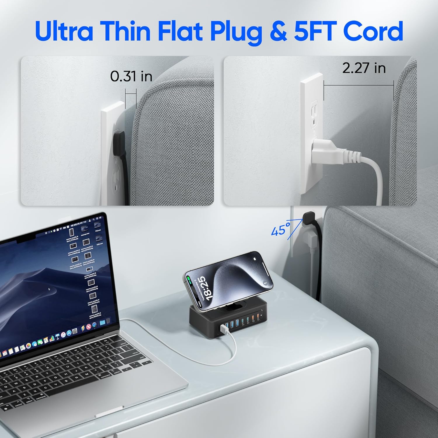 - Special Feature : 8USB, 2AC Outlets, 115W Fast Charging Station, Foldable magnetic Charger, 5FT Flat Extension Cord
