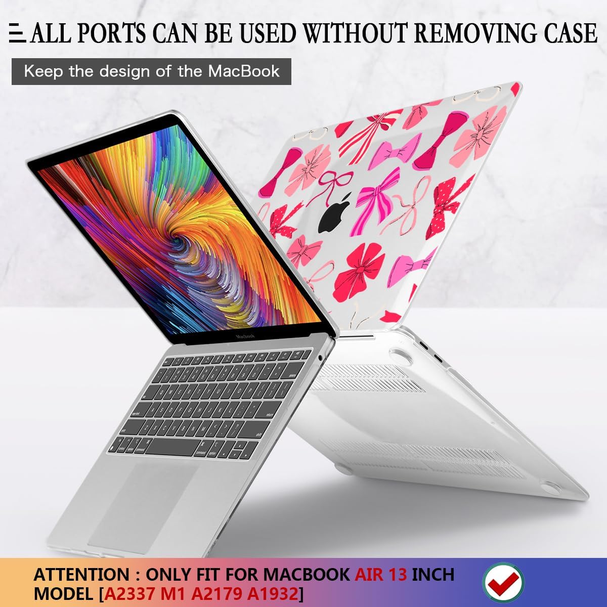 CISSOOK Compatible with MacBook Air 13 inch Case 2022 2021, 2020-2018 Release Model M1 Chip A2337 A2179 A1932, Plastic Hard Shell Case for MacBook Air 13-inch with Retina Display Touch ID, Pink Bows
