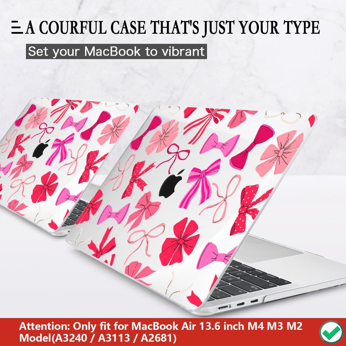 - Pretty Case, use 3D UV 4-layer process print technology, well-printed pink bows design on a hard plastic case with soft touch texture that makes your midnight/starlight/space gray/silver macbook air m2 m3 out of the ordinary.