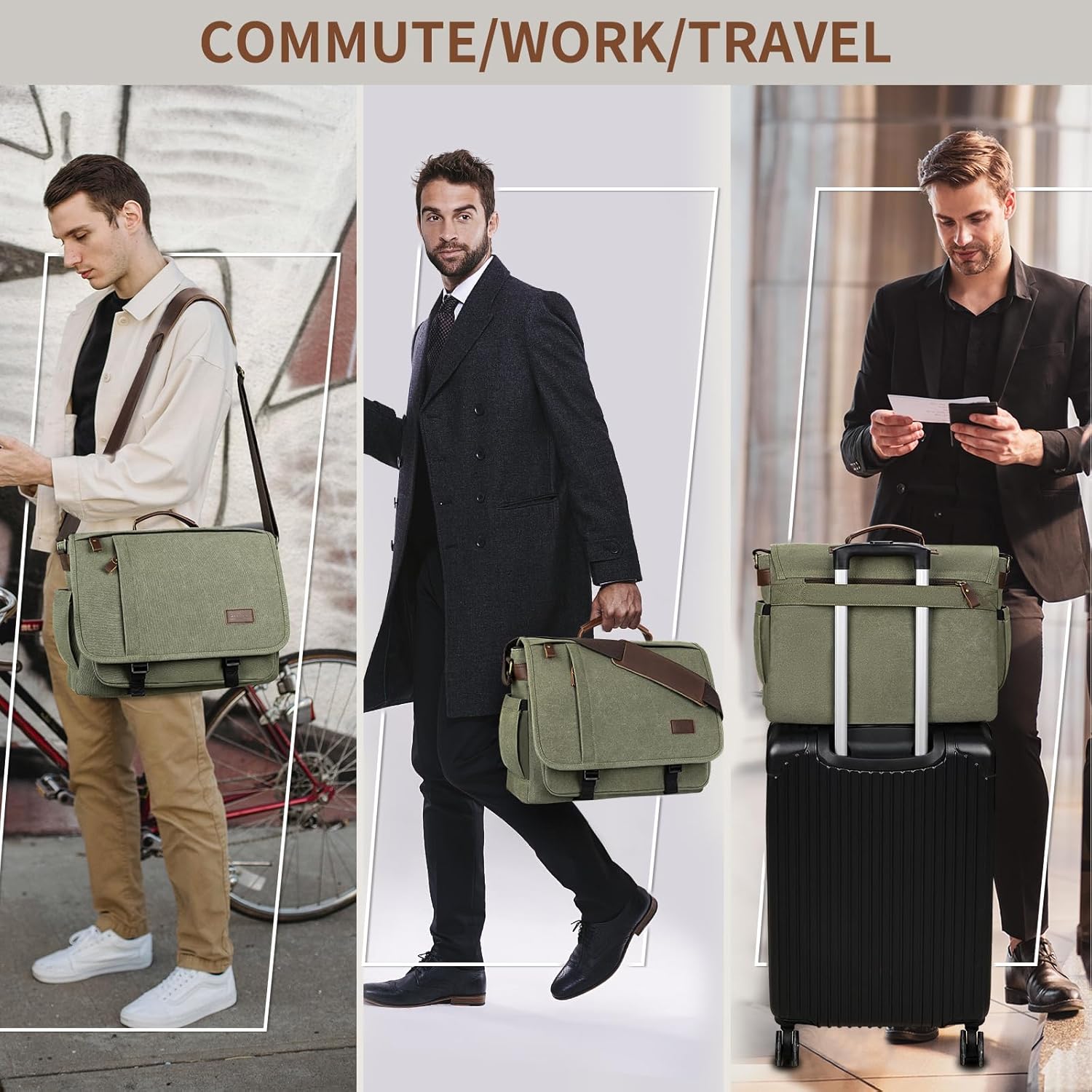 ESTARER Men's Messenger Bag 17.3 Inch, Water-resistant Canvas Laptop Bag, Computer Shoulder Bag for College Travel Work, Army Green