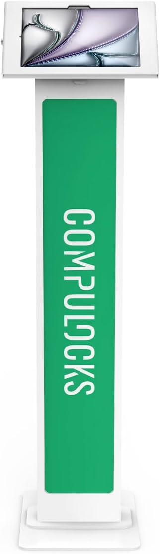 Compulocks iPad Air M2 & M3 11" Apex Enclosure Brandable Floor Stand – Secure Tablet Display Kiosk Mount, Digital Signage, POS Display - White