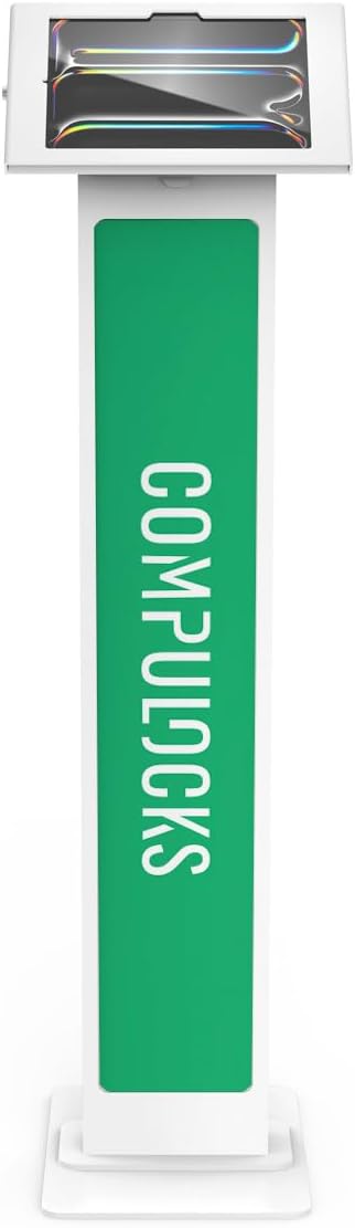 Compulocks iPad Pro M4 11" (2024) Apex Enclosure Brandable Floor Stand – Secure Tablet Display Stand, Kiosk Mount, Stand for Touchscreen Tablets, Digital Signage, POS Display - White