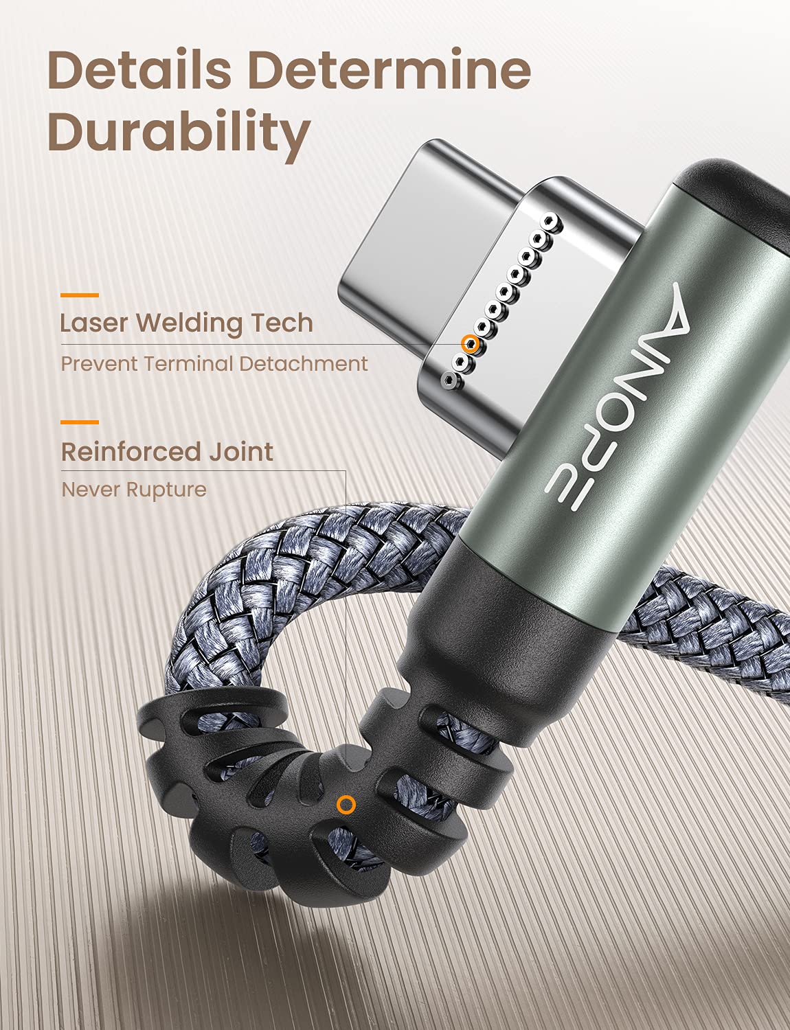 AINOPE USB to USB C Cable [5-Pack, 6.6ft] 3.1A Type C Charger Fast Charging, Right Angle USB to C Cable for Galaxy A15 A25 A35 A55 A54, S10+ S10 S9, Note 20 10 9, LG V30, Moto G, iPhone 16 15 Cord