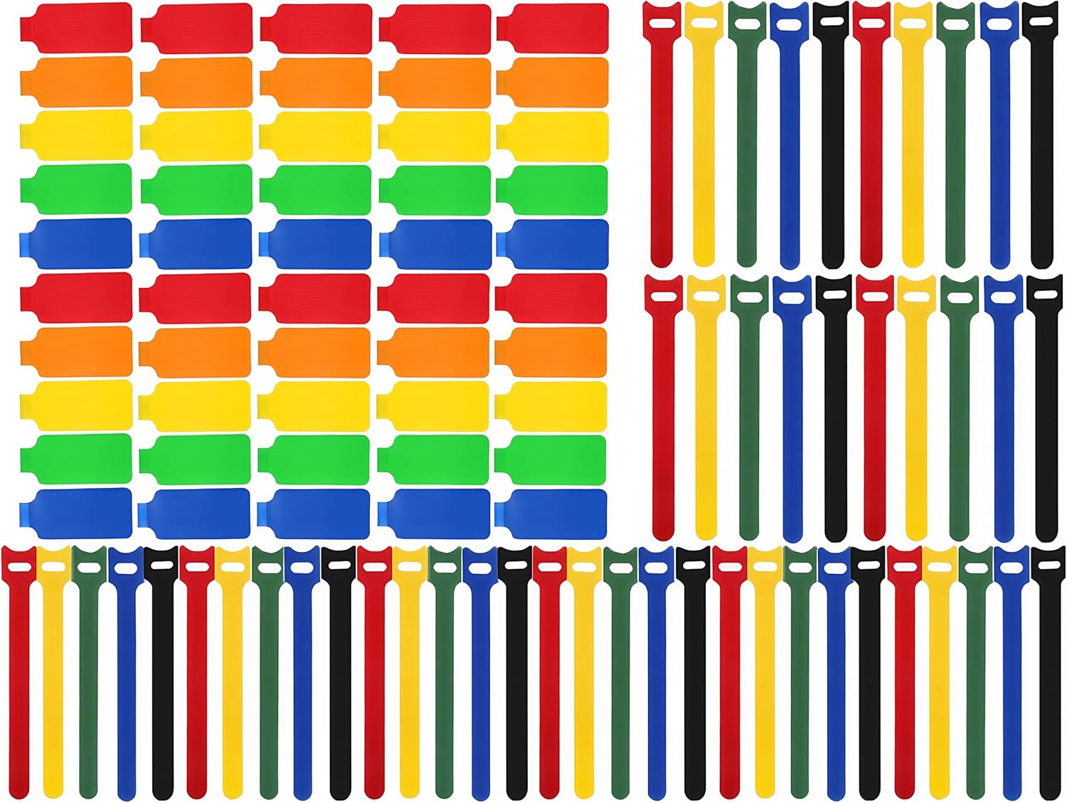 100 Pcs Multicolor Write On Cable Labels & Reusable Fastening Cable Ties Set for Cable Management in Home Office