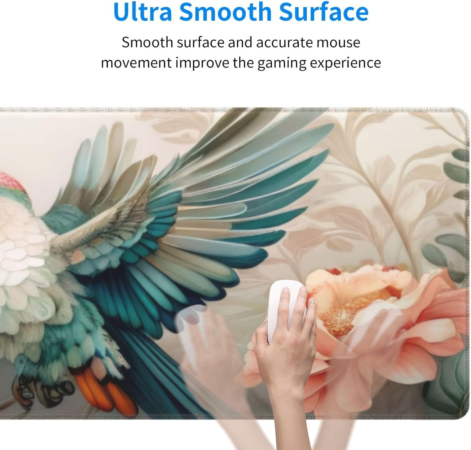 Gaming Mouse Pad, Large Non-Slip Rubber Base Mousepad, Keyboard Mouse Mat, Desk Pad with Stitched Edges, 31.5x11.8inch, Art Bird Flower