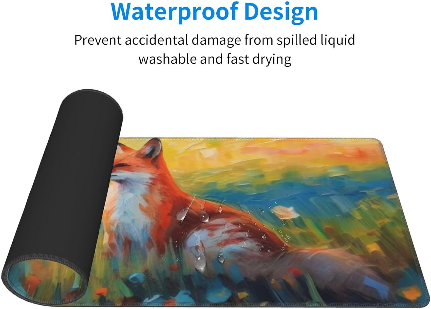 Gaming Mouse Pad, Large Non-Slip Rubber Base Mousepad, Keyboard Mouse Mat, Desk Pad with Stitched Edges, 31.5x11.8inch, Fox