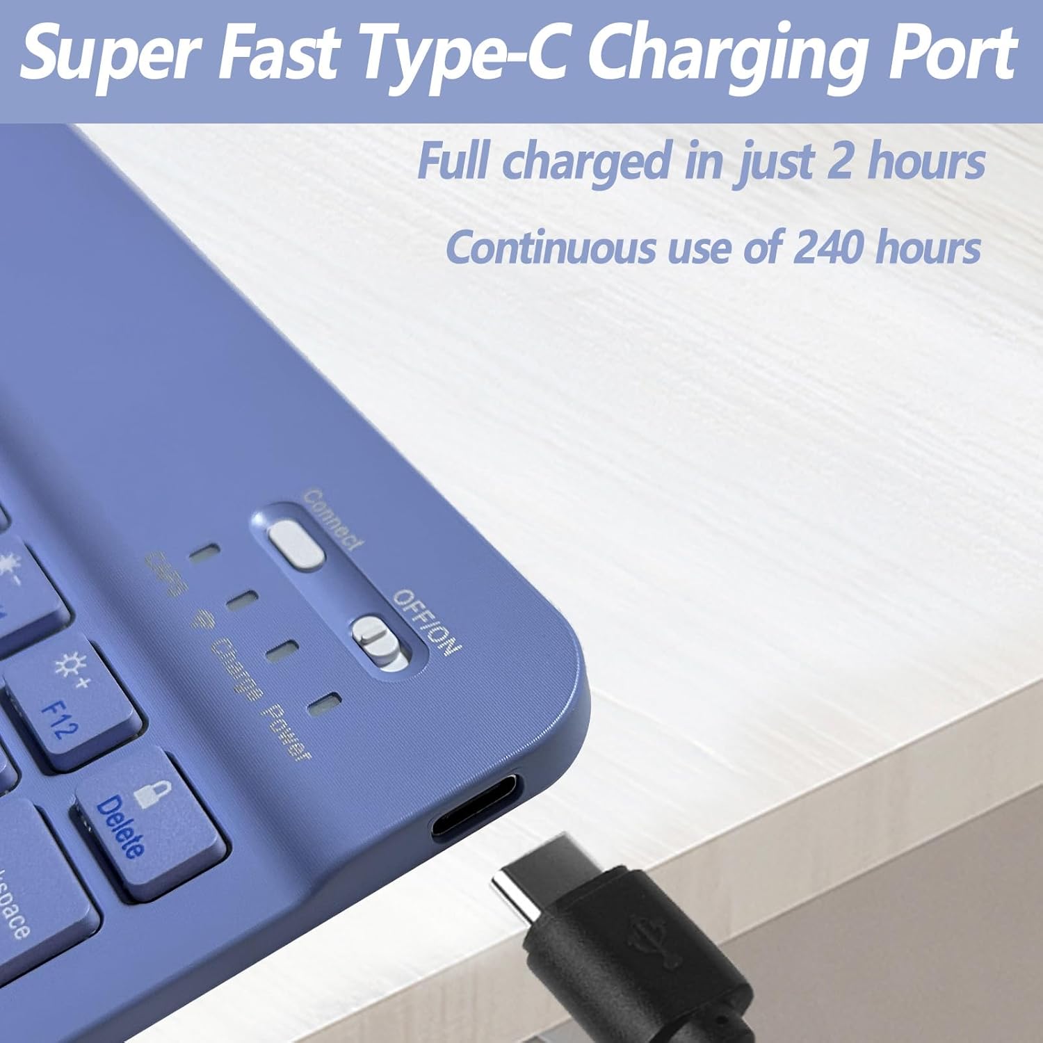 - Rechargeable and Long-life Battery: This keyboard has a built-in large-capacity rechargeable battery, which is more energy-saving and lower consumption. You can use it for at least 360 hours. It can be fully charged in 2.5 hours using a Type-C charging cable, which is very convenient