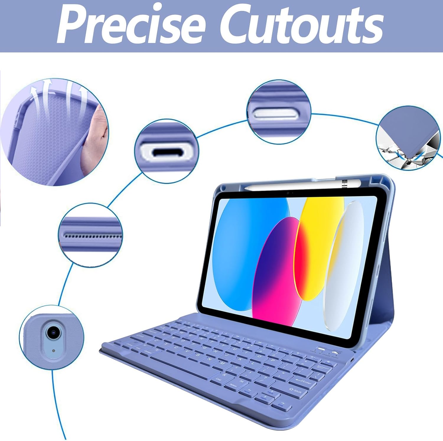 - Precise Cutouts: Precise cutouts on the case allow easy access to all iPad 10th generation ports, such as the camera, speakers, headphone jack, and volume controls.