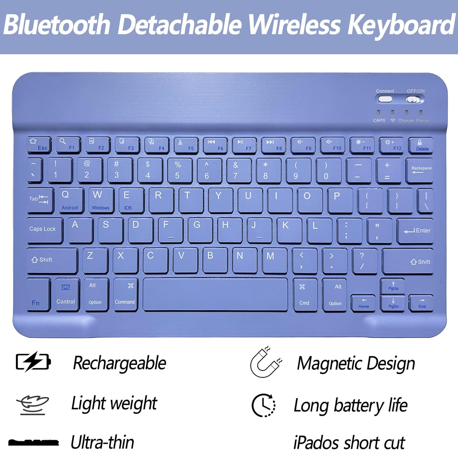 - Detachable Wireless Keyboard: This detachable Bluetooth keyboard can be magnetically attach to the iPad protective case and can be removed when not needed. Ergonomic keys with rebound function to reduce noise for a comfortable typing experience