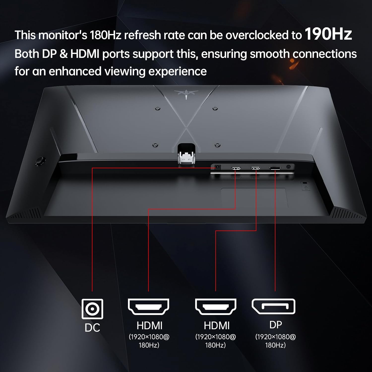 - Powerful and Strong Connection:This FHD 1080P gaming monitor, with HDMI (HDMI 2.0) and DP 1.4, links to various devices. Both ports support 180Hz (up to 190Hz overclocked), delivering a top - notch gaming experience
