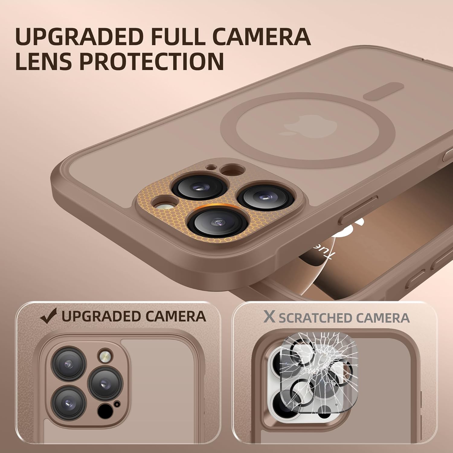 BERFY Magnetic for iPhone 16 Pro Max Case, Compatible with MagSafe, [Built-in 9H Tempered Glass Screen Protector & Camera Protection] Full Body Matte Phone case for 16 Pro Max, Withered Brown