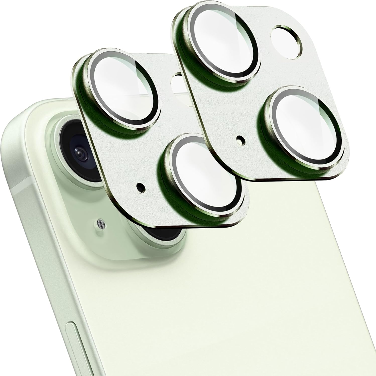 2 Pack Camera Lens Protector for iPhone 15 / iPhone 15 Plus,[Not Easy to Breakn ] AR Tempered Glass Strong Adsorption Metal Camera Cover Screen-Light Green