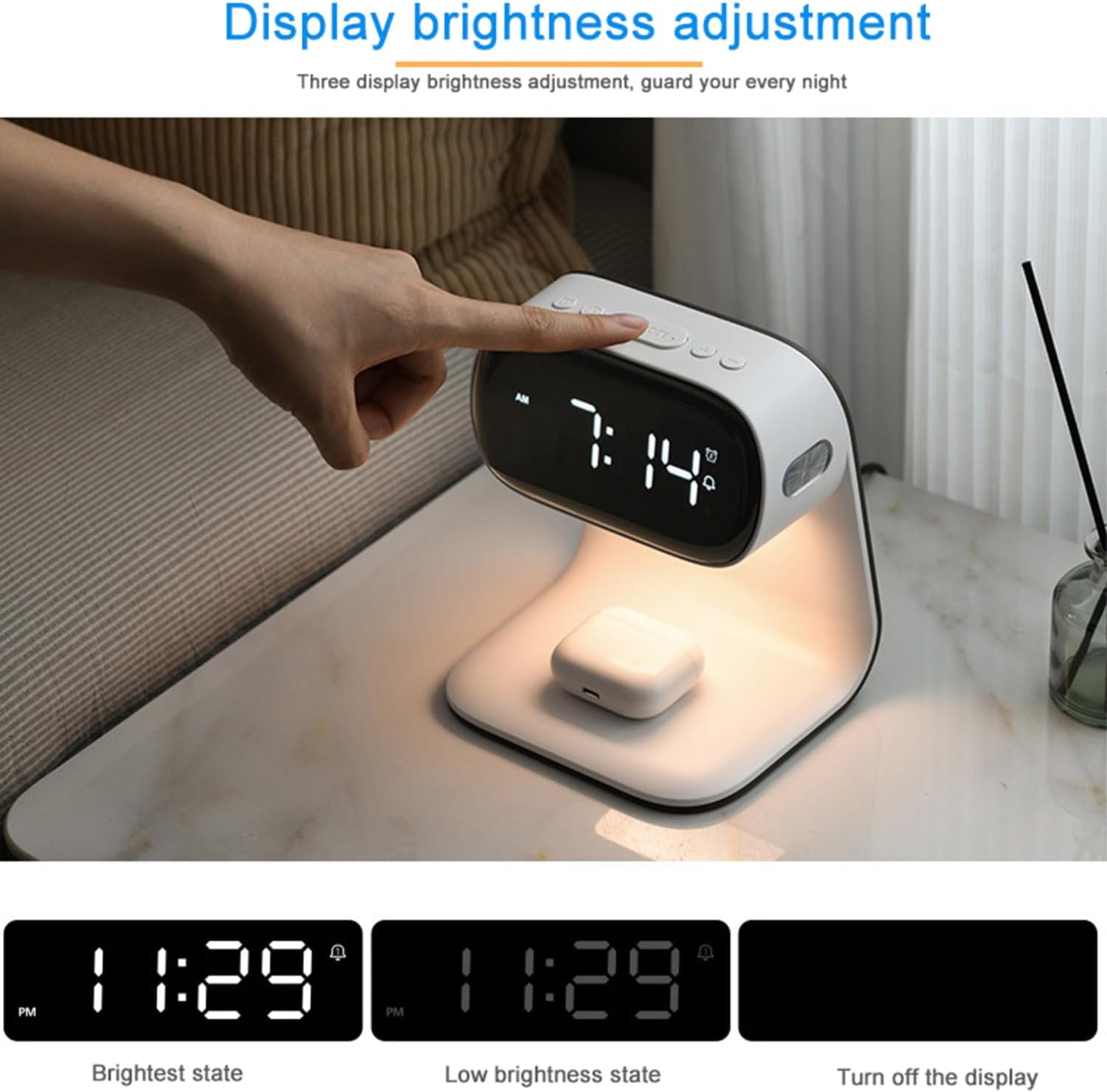 - 【3in1 Multi-functional professional design】Digital alarm clock, 15W Wireless Charger dock, night light. The smart alarm clock lamp wireless charger makes it a multifunctional.Supports any device with wireless charging capability that comes with the ios system