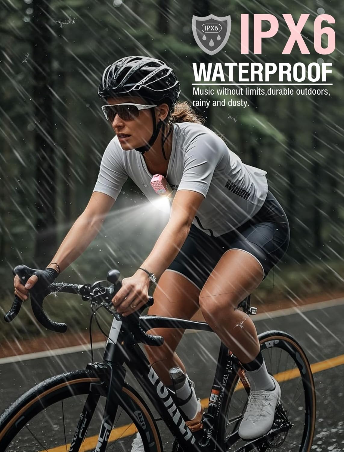 - 【Versatile Flashlight & RGB Light】Cool speakers with flashlight have two levels of adjustment. Press to turn on the flashlight, which can provide lighting while riding/working. Long press to turn on RGB, dynamic RGB light sets the colorful mood that changes color to the rhythm of the music to enhance your musical experience.