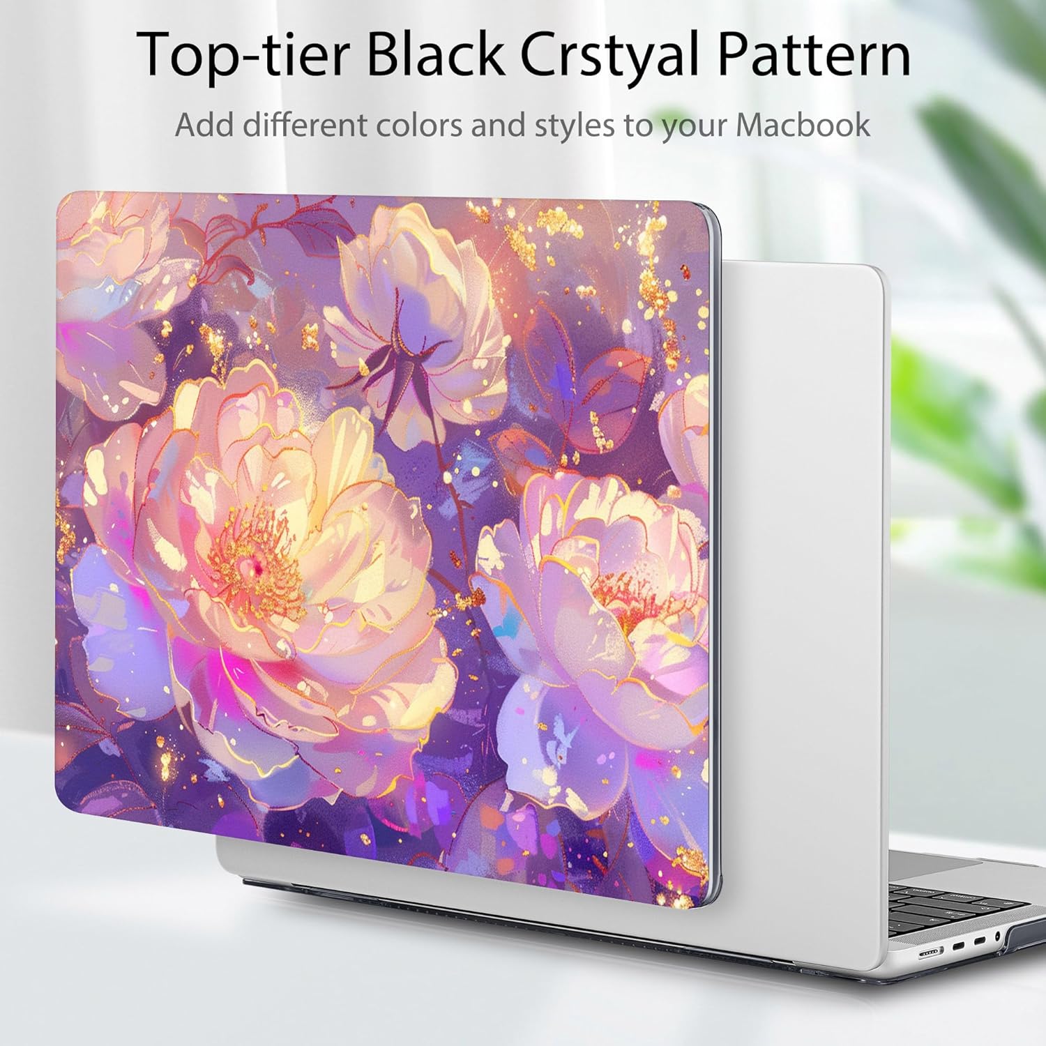 Tuiklol for MacBook Pro 14 Inch Case 2024-2021 Release M4 A3112 A3401 A3185/M3 A2918 A2992/M2 A2779/M1 A2442 Pro/Max,Hard Shell Case with Keyboard Cover & Screen Protector for Touch ID,Sparkly flowers