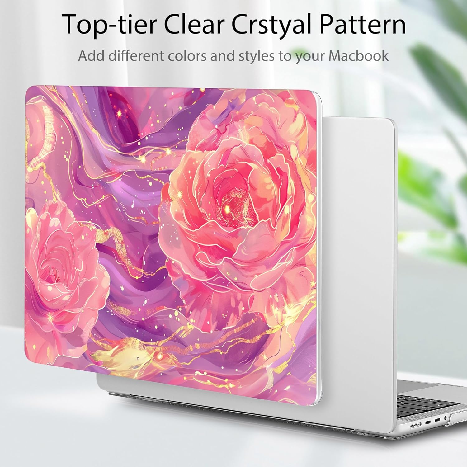 Tuiklol for MacBook Pro 14 Inch Case 2024-2021 Release M4 A3112 A3401 A3185/M3 A2918 A2992/M2 A2779/M1 A2442 Pro/Max,Hard Shell Case with Keyboard Cover & Screen Protector for Touch ID,Pink Roses