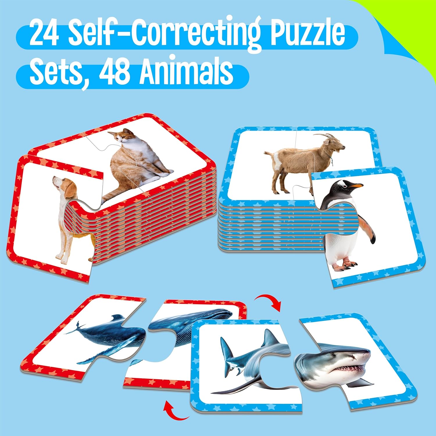 48 Animal Matching Puzzles with Error-Correction, Self-Correcting Puzzle Match Game Educational Learning Activities for Toddlers, Kindergarten, Animal-Themed Learning Games Toys for 3 Years Old