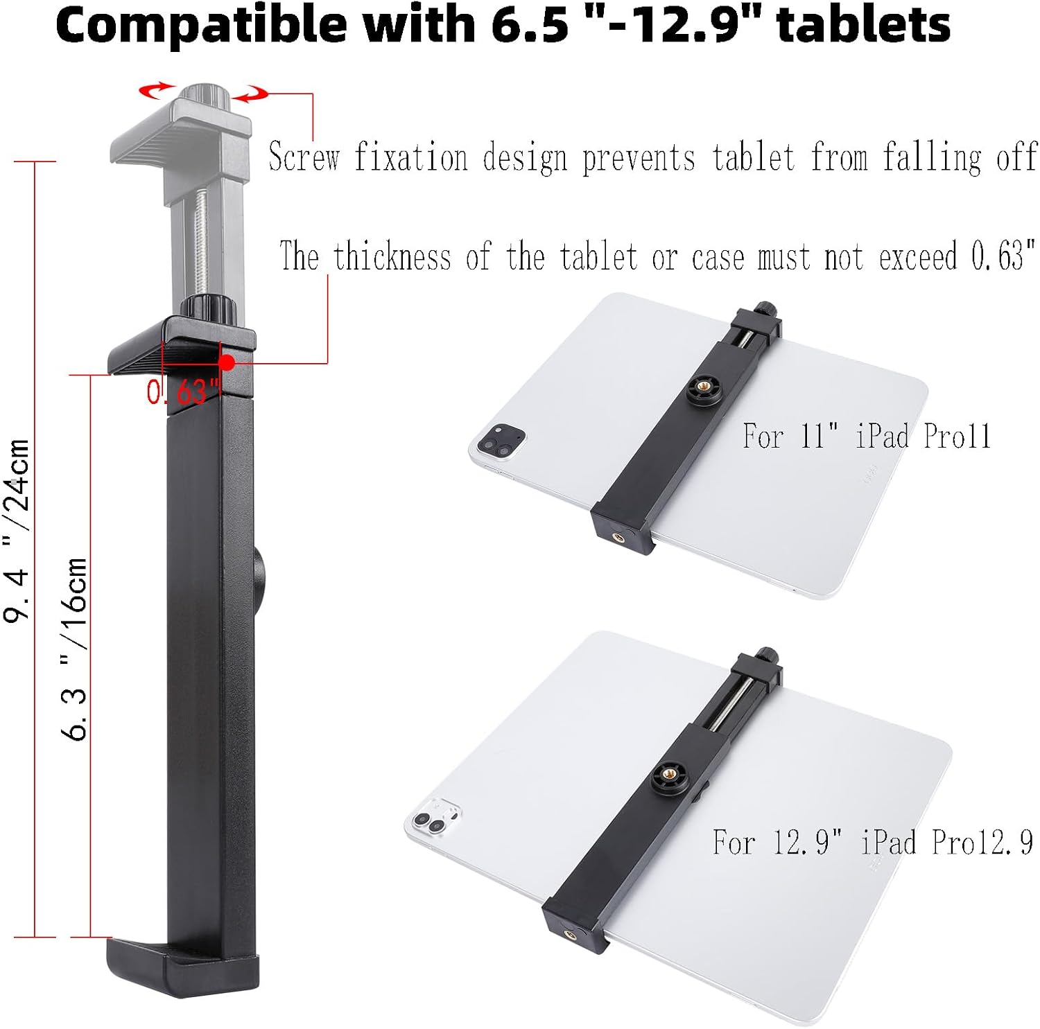 - **Secure Tablet Clamp**: The ABS tablet clamp includes rubber padding on both ends and a reliable spiral knob mechanism to keep your device safe in any position. Exceeding standard spring clamp specifications, it offers a powerful grip that prevents slipping or falling.
