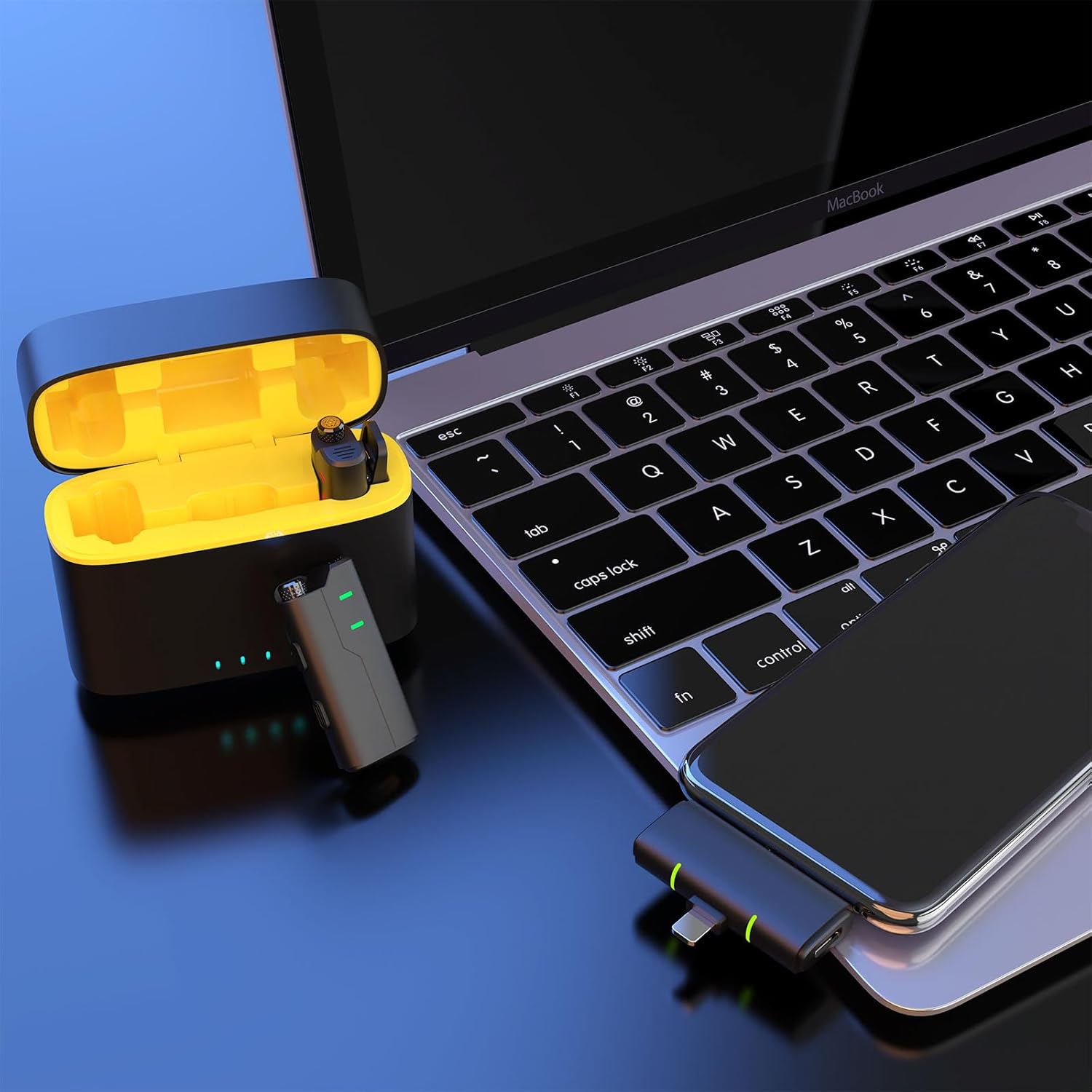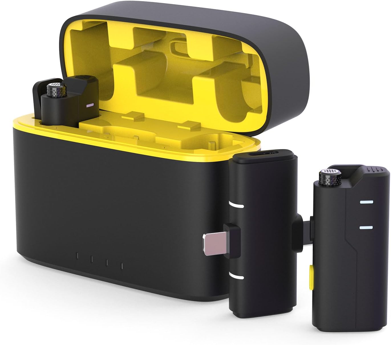 - Included Components : Charging cable, Converters for Apple and Android, battery compartment, lavalier microphone