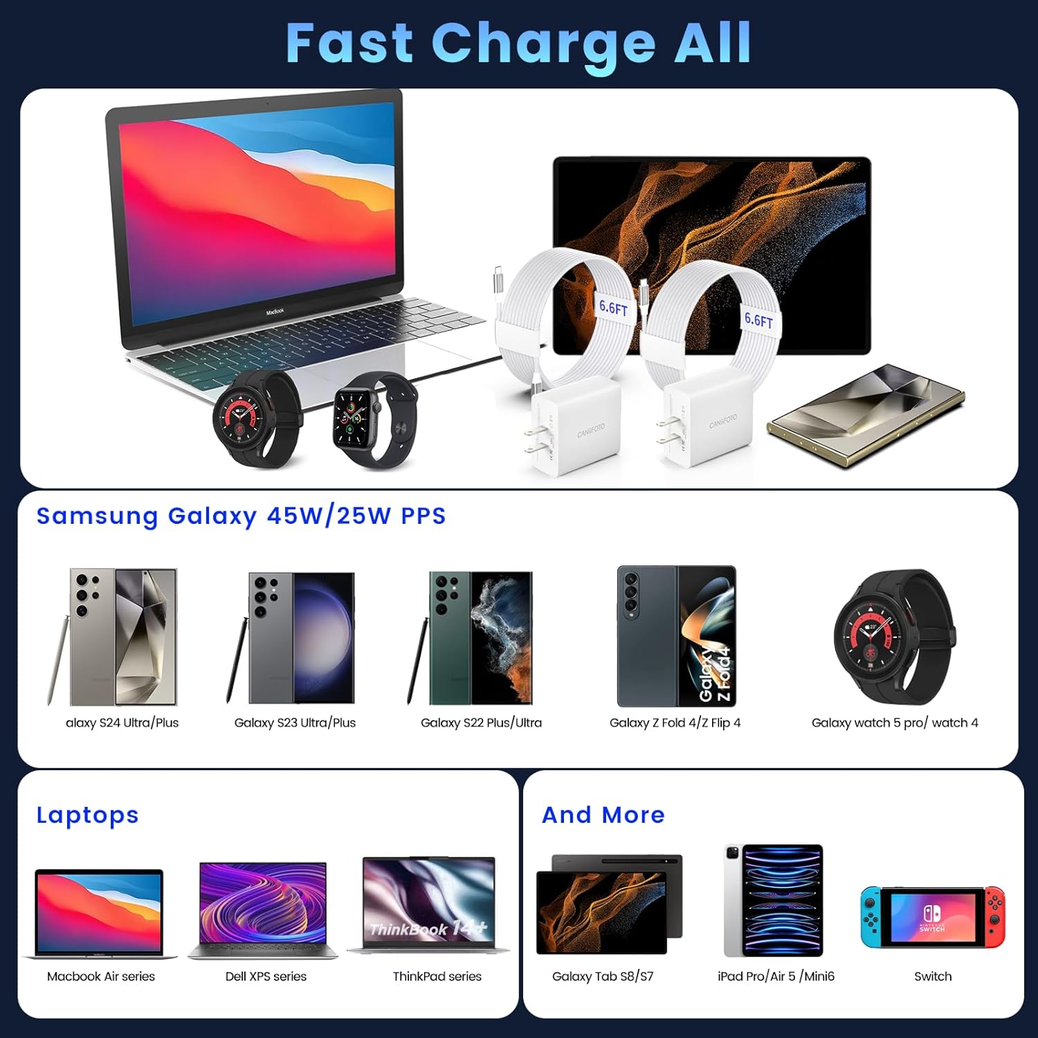 - 【Universally Compatible USB C Charger】: The galaxy s23 charger Kit works seamlessly with a wide range of devices, including Samsung Galaxy S24 Ultra/S24+/S24/S23 Ultra/S23+/S23/S22 Ultra/S20/S20+/S20 Ultra/Note 20/10, Galaxy Tab S9+/S8... It also has the ability to super fast charge 25W max devieces like Samsung Galaxy S21/S21 Ultra/ S21+ 5G, S20/ S20 Ultra/ S20+/ S20 FE, Note 20/ Note 20 5G, Note 20/ 20 Ultra 5G/ S10...