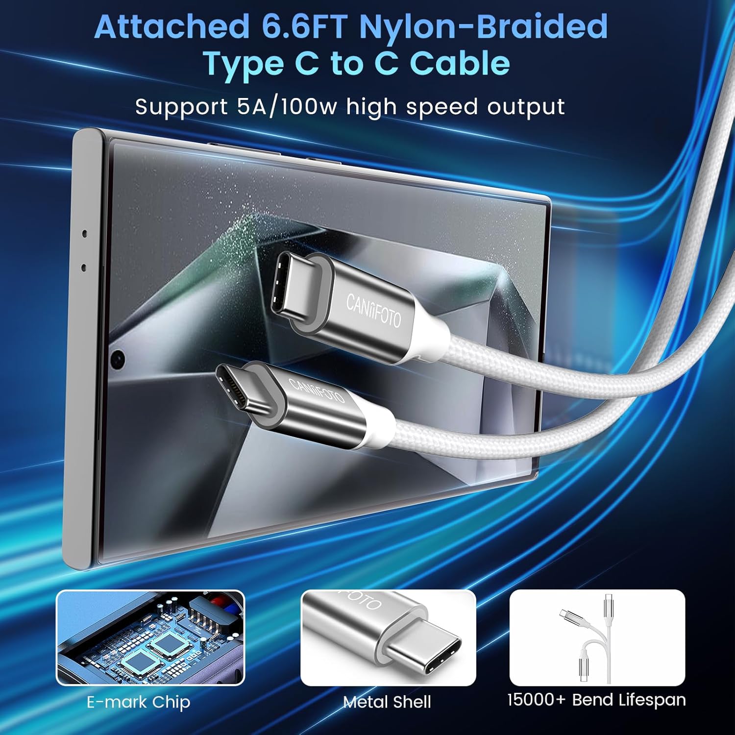 - 【2X 6.6FT Type C Cord】: This samsung galaxy s24 ultra charger kit come with 2pack 6.6ft/2m 100W Type-C charger fast charging cord, meticulously crafted with premium nylon braiding. The tangle-free cables provide the ultimate convenience, allowing you to comfortably charge your device from the comfort of your bed, couch, or office. Enjoy unparalleled flexibility and durability with galaxy charger fast charging cord.