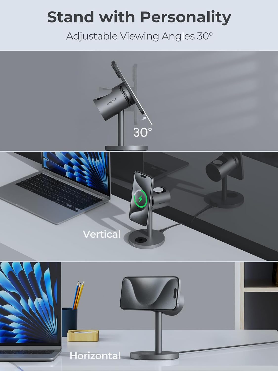 - Less is More: This wireless charging dock not only charges for your iPhone, Samsung, Airpods and Apple Watch. It can also be used as a phone stand with a 30° adjustable vertical angle for a more comfortable viewing angle