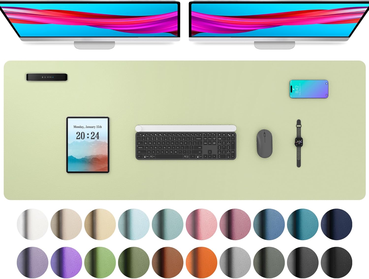 Aothia Leather Desk Pad Protector, Office Desk Mat, Large Mouse Pad, Non-Slip PU Leather Desk Blotter, Laptop Desk Pad, Waterproof Desk Writing Pad for Office and Home (48"x17", Grass Green)