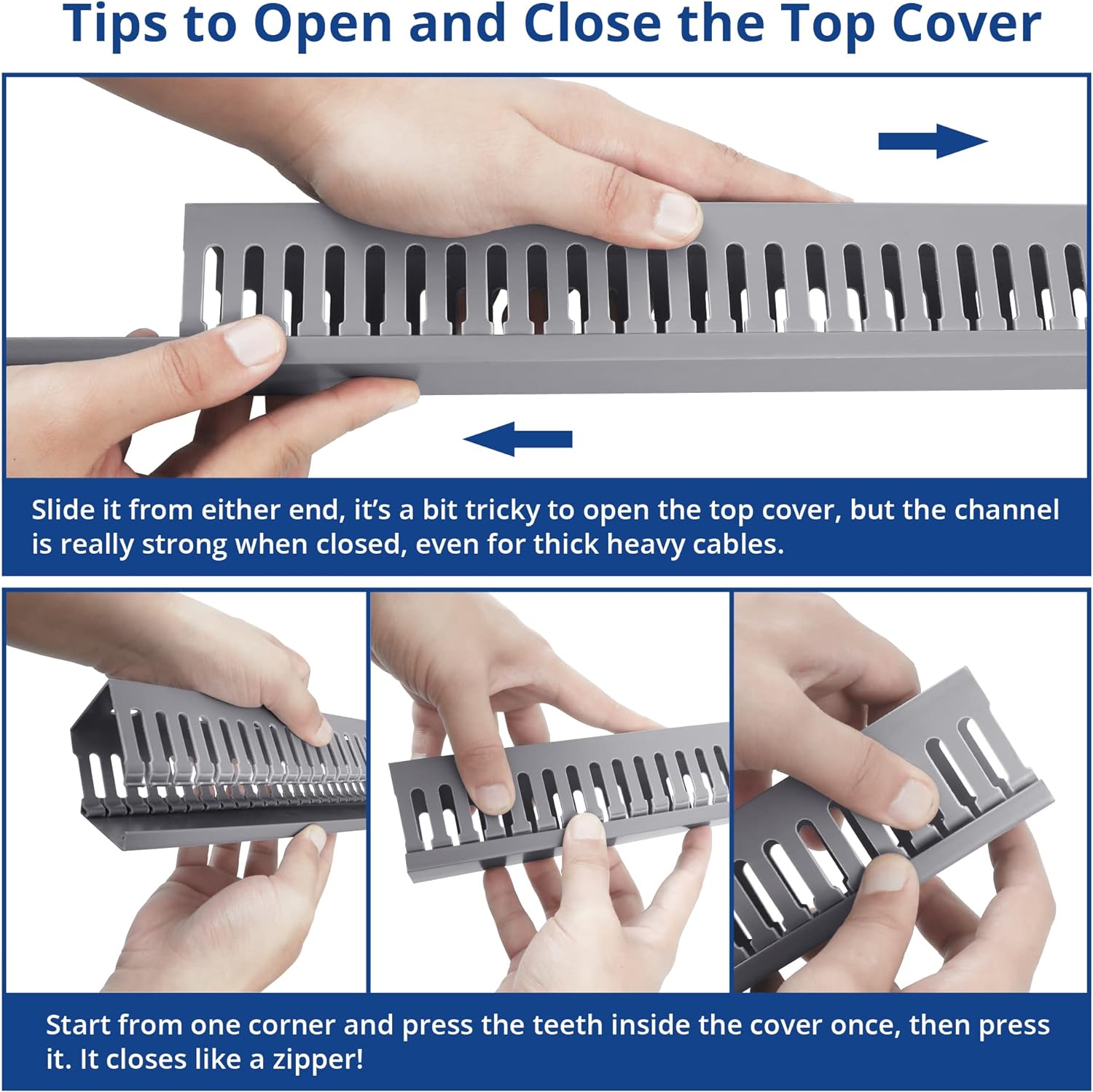 - Excellent Structural Design: Our cable management kit can manage and protect cables more efficiently. Its bottom and cover are stable and firm, and the design conforms to international standards. The Cable Channel is thickened, which is durable, not easy to deform, sturdy, and anti-warping