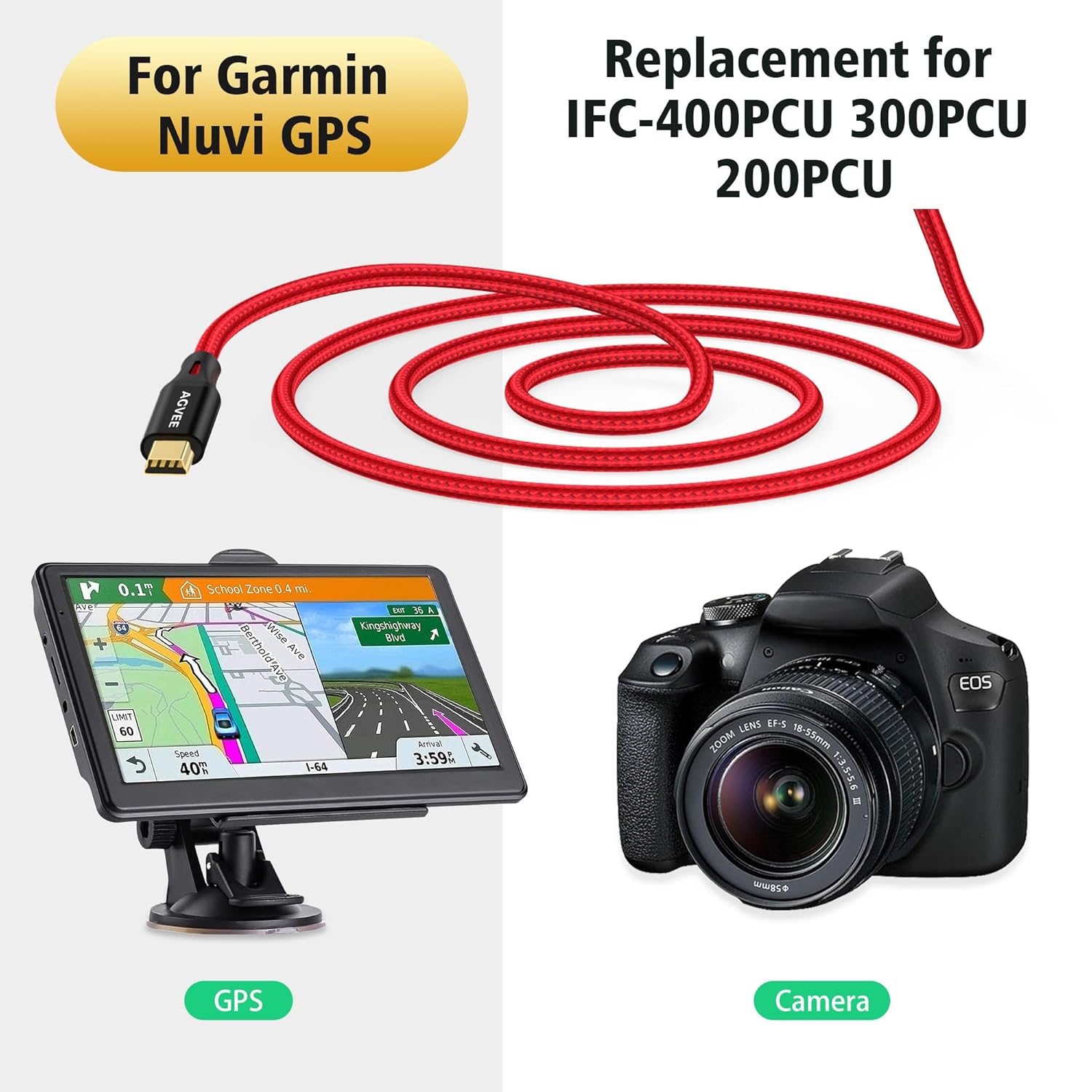 - Compatible Devices : Blue Yeti Microphone & Blue Snowball ICE USB; Sony Handycam HDR-CX11 CX12 CX150 CX190, DCR-SR47 SR48 SR60 SR62 SX85, Canon PowerShot Cameras A D E ELPH G S SD SX Series: 180 190 300, XS400, 300 HS, A1400, SD600, G7X, SX400is DSLR & Vixia camcorders & Rebel T3, T6, T6i, T7i, SL1; Nikon Digital Camera SLR DSLR: D300 D3100 D3100S D3X D40 D40X D50 D60 D70 D100 D700 D40X D7000, Garmin Nuvi 140 200 200W 205 205W 215T 250 250W 255 255W 260 260W 265T 265WT 270 275 275T 295W 300 310 350 360 370 40LM 465 465LMT 465T 500 510 50LM 550 650 660 670 680 750 755T 760 765T 770 775T 780 785T 805 850 855 880 885T 1100 1100LM 1200 1250 1260T 1300 1300LM 1300LMT 1350 1350LMT 1350T 1370 1370T 1390 1390LMT 1390T 1480T 1490 1490LMT 1490T 1690T, Garmin Nuvi 2250 2539LMT 2555LMT 2557LMT 2559LMT 2589LMT 2595LMT 2597LMT 2599LMTHD 2639LMT 2689LMT 2699LMT 2699LMTHD 50LMT 50LMTHD 51LM 51LMT-S 52LM 55LM 55LMT 570LMT 57LM 60LMT 60LM 61LMT-S 660LMT 67LM 67LMT 770LMTHD, TI-84 Plus CE Graphing Calculators TI-84 Plus C Silver Edition; TI-89 Titanium Graphing Calculators; TI Nspire CX Graphing Calculators; TI Nspire CX CAS Graphing Calculators TI84 TI89 Plus Blue Yeti Microphone & Blue Snowball ICE USB; Sony Handycam HDR-CX11 CX12 CX150 CX190, DCR-SR47 SR48 SR60 SR62 SX85, Canon PowerShot Cameras A D E ELPH G S SD SX Series: 180 190 300, XS4… See more