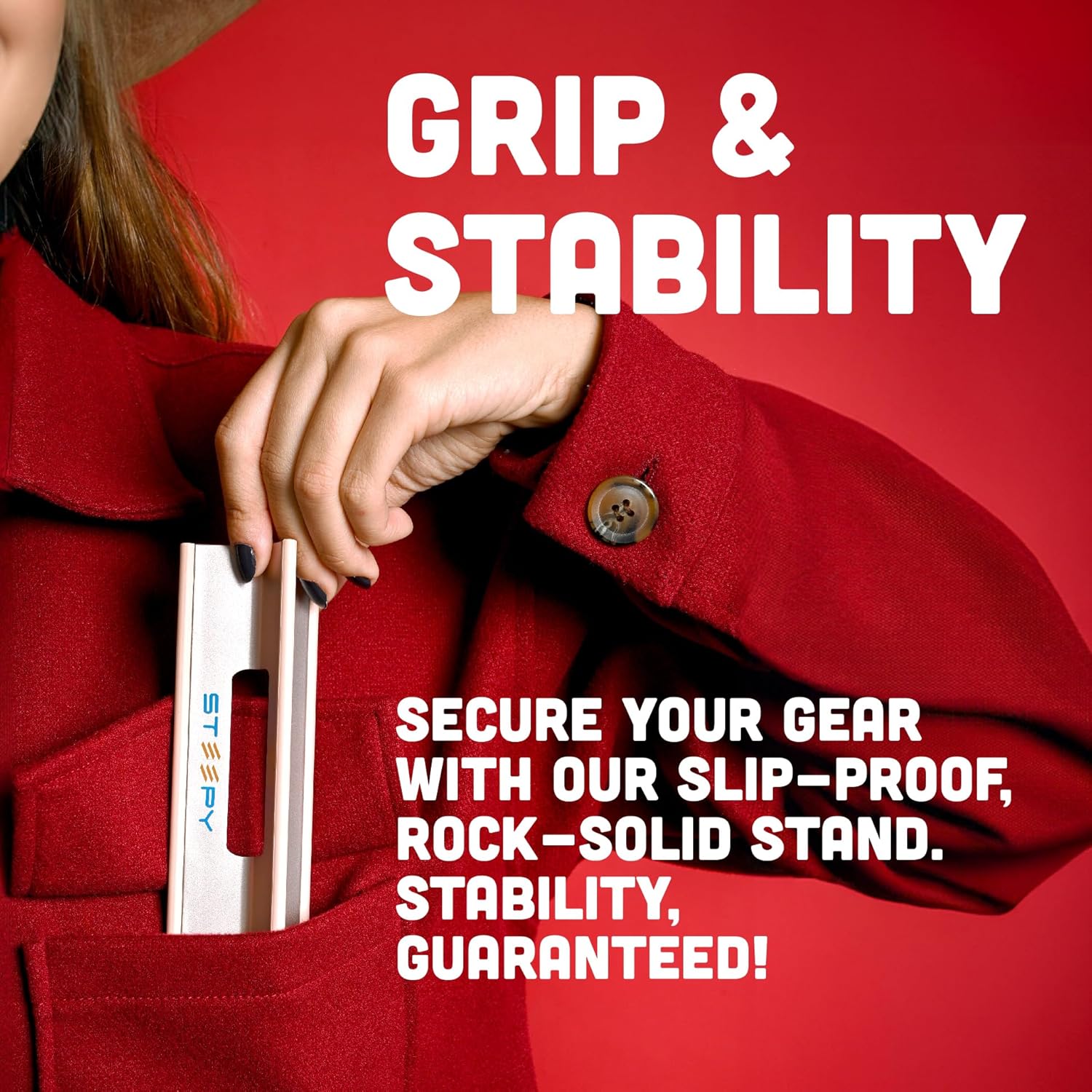 - SETUP'S A BREEZE - Just unfold & go—no screws, no hassle. Instant use, instant time saver! Steepy desk laptop stand is a laptop stand portable made out of strong & durable recycled plastic, with rubber edges to provide the sturdy & stable support your device needs & prevent it from sliding or skidding.