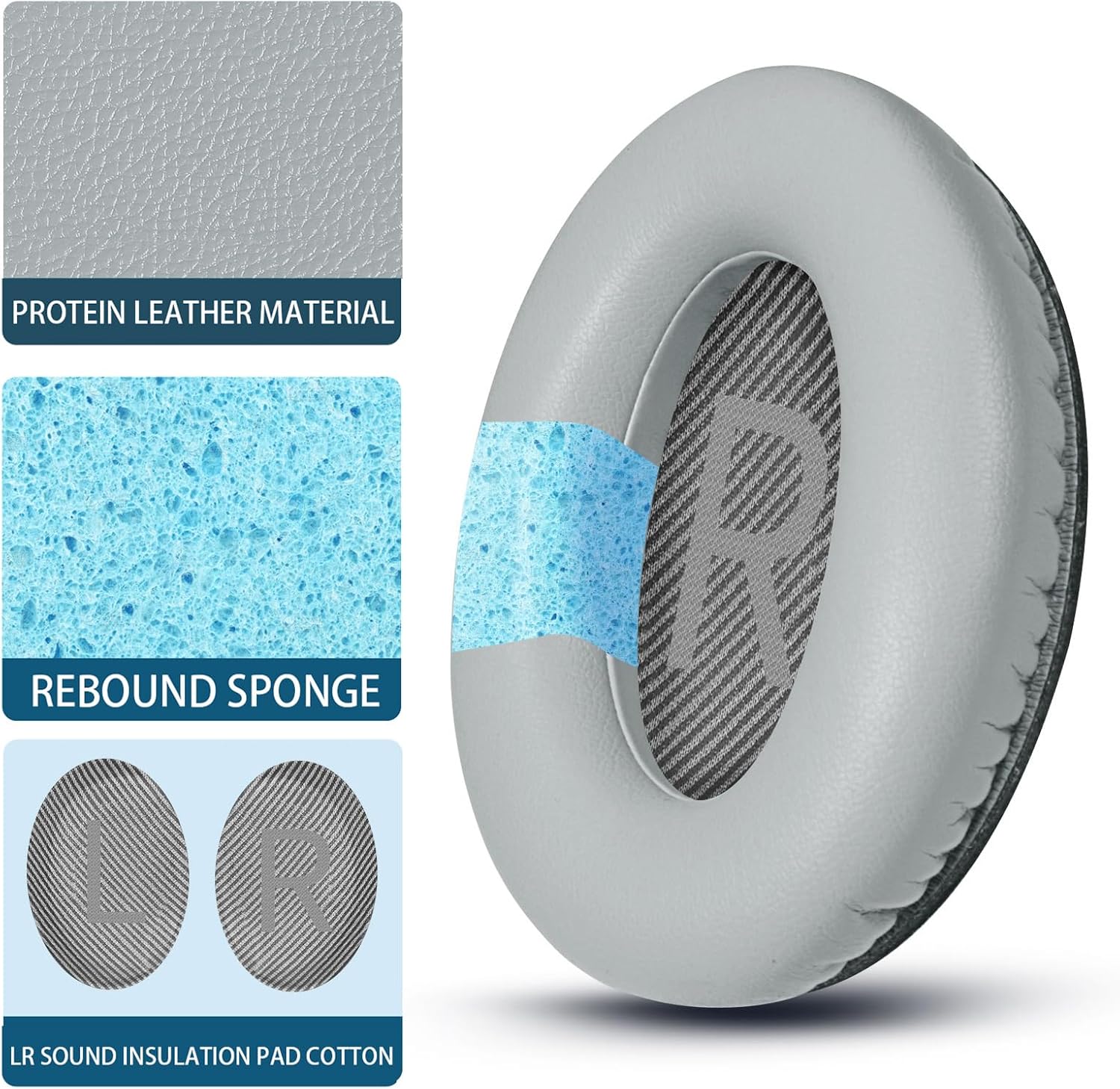 Headphones Replacement Ear Pads, Protein Leather earpad Cushions for Bose Quiet Comfort QC35 Headphones, Replacement Earpads, Softer Memory Foam - Gray