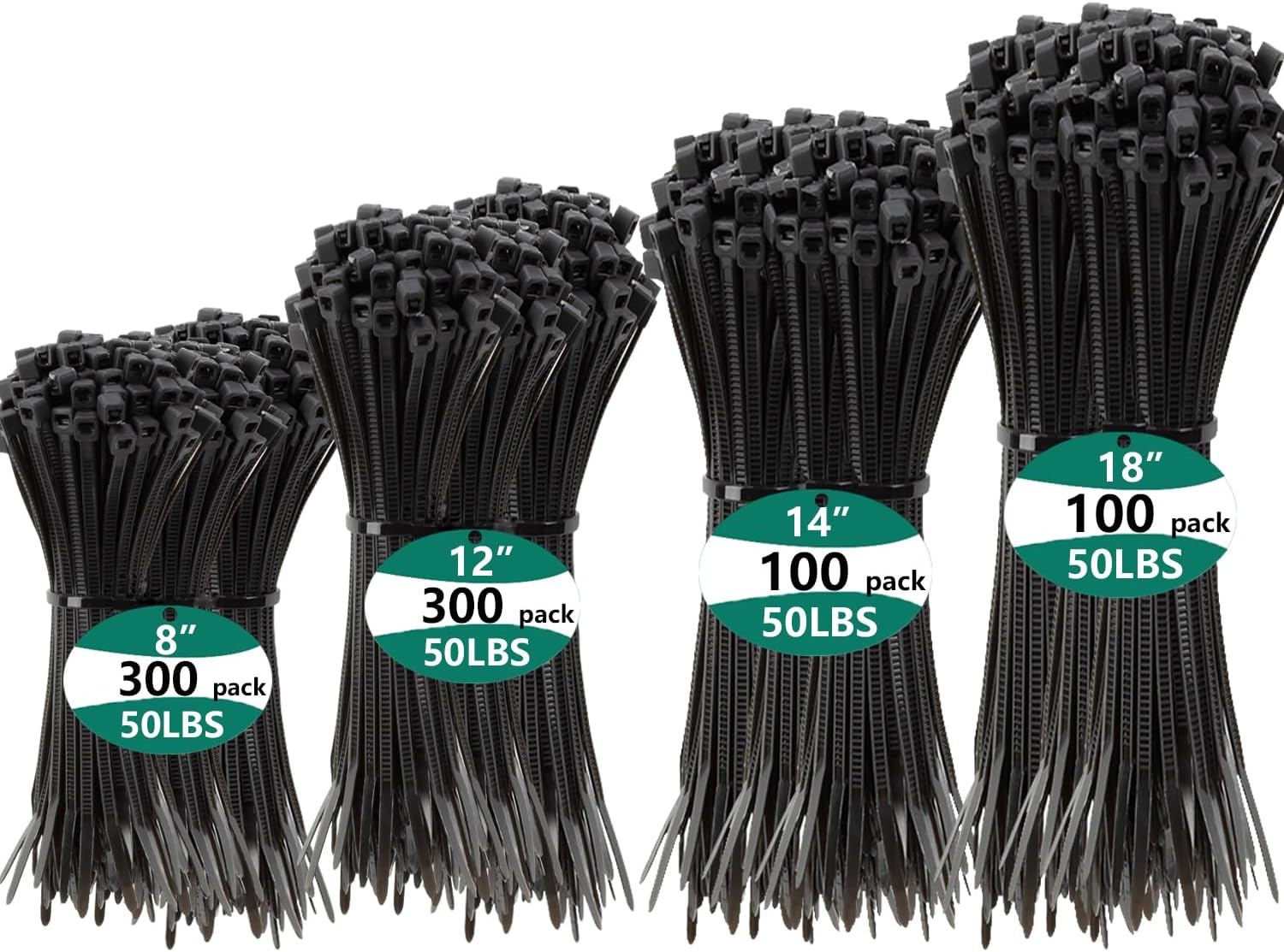 - 【Packages include】800 pcs cable ties (8 inch 300pcs , 12 inch 300pcs , 14 inch 100pcs , 18 inch 100 pcs ). Different sizes of cable ties basically meet your daily or working needs.
