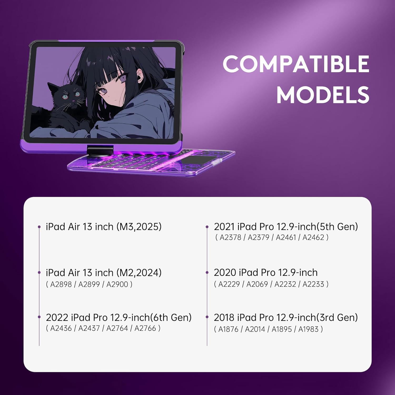 - Compatibility: Perfectly designed for the 2024 iPad Air 13-inch (M2), 2025 iPad Air 13-inch (M3), as well as the 2022 iPad Pro 12.9-inch (6th Gen), 2021 iPad Pro 12.9-inch (5th Gen), 2020 iPad Pro 12.9-inch (4th Gen), and 2018 iPad Pro 12.9-inch (3rd Gen).