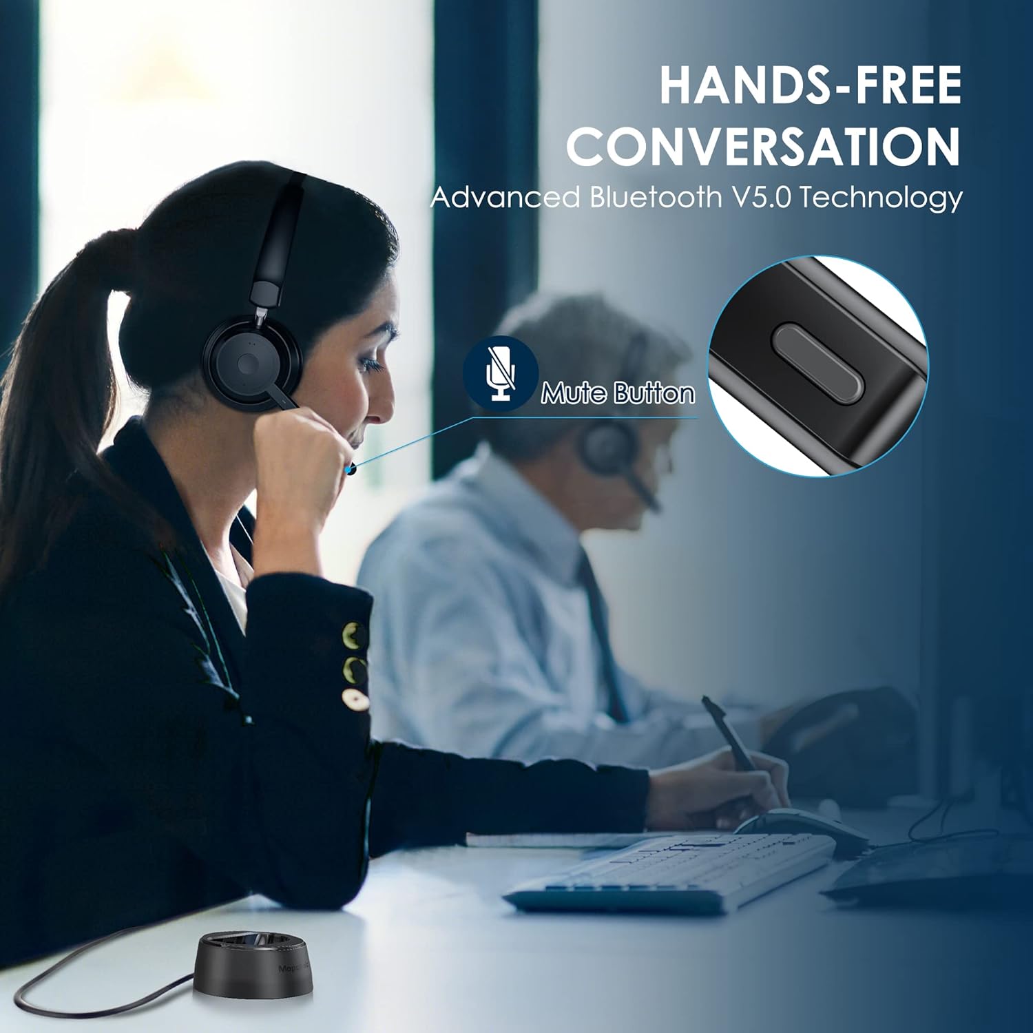 Bluetooth Headset, Wireless Headphone with Microphone for Computer, On Ear Bluetooth with USB Dongle for Office Call Center Skype Zoom Meeting Online Class (Dark Gray)