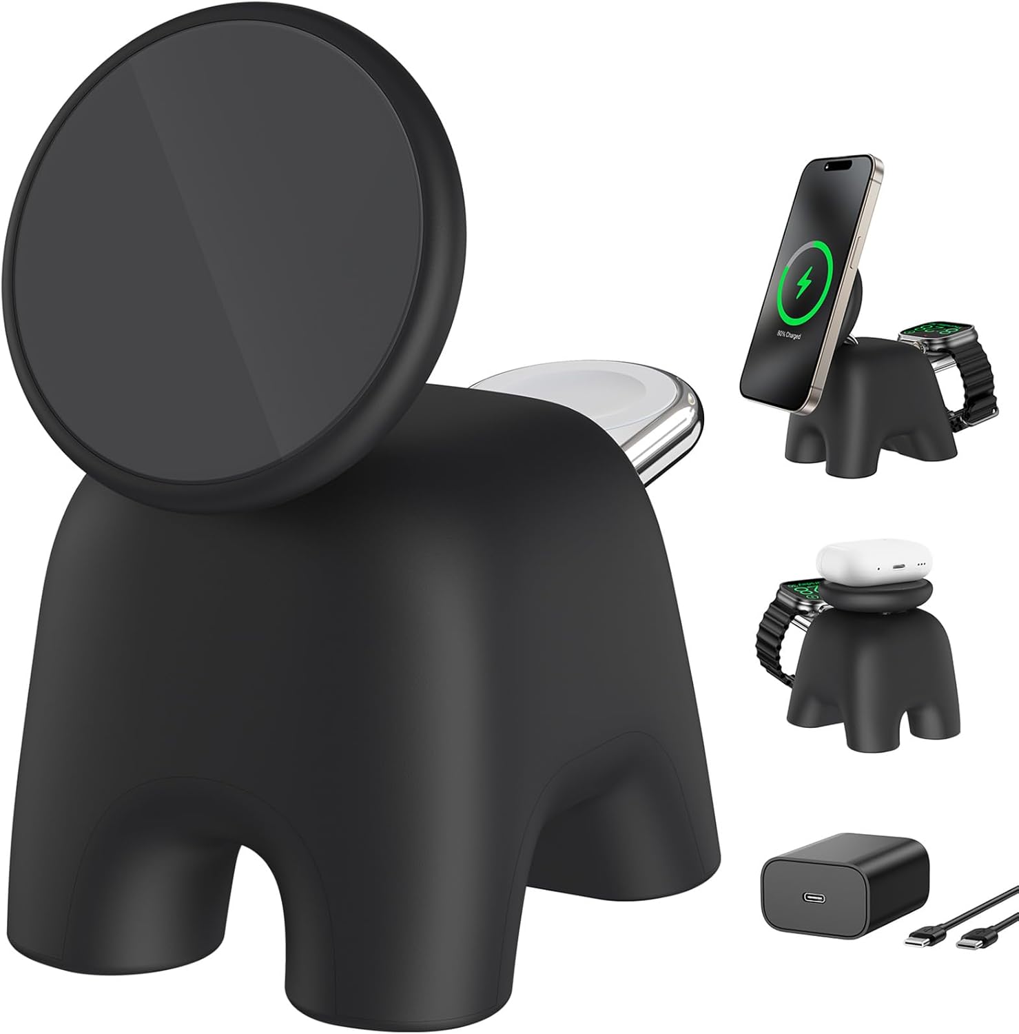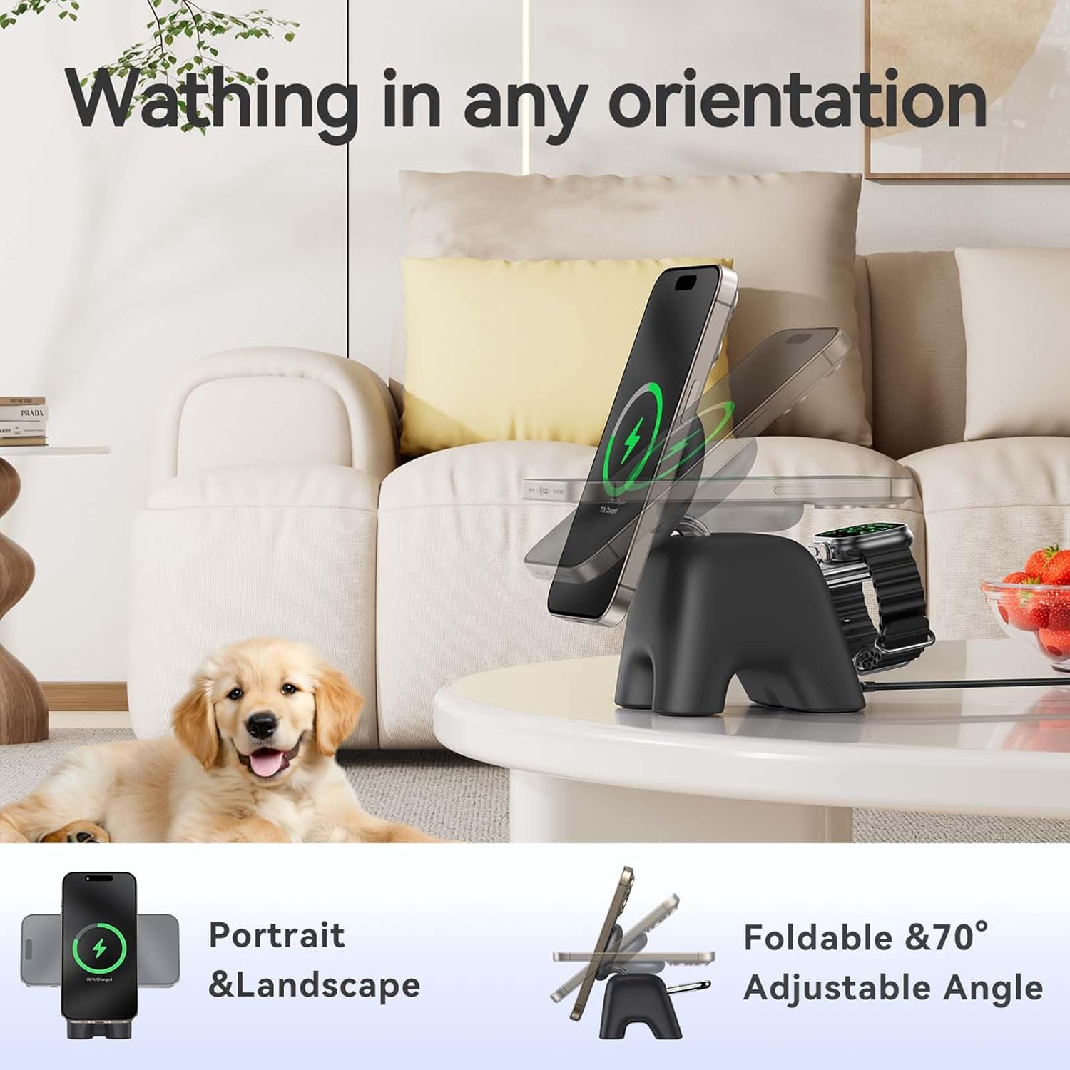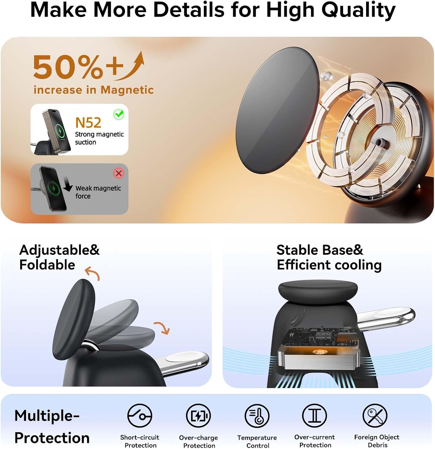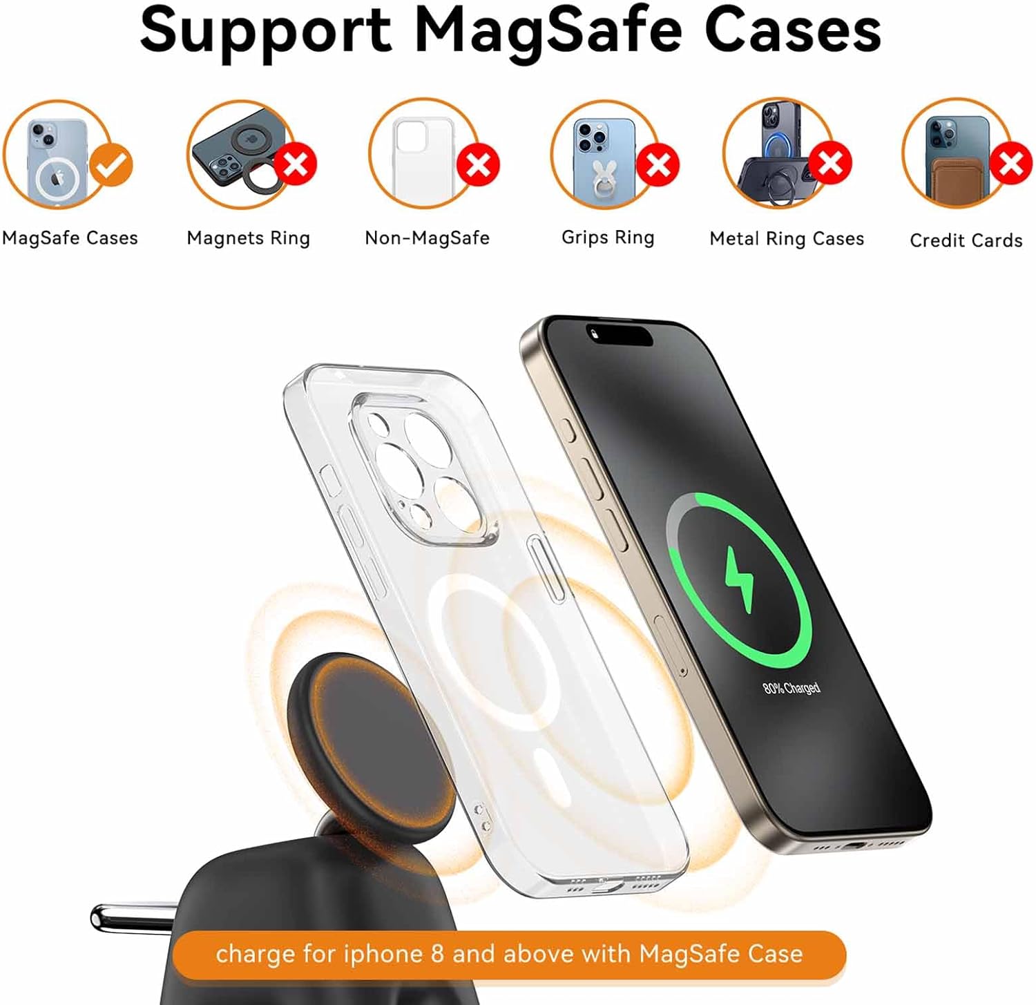 - Compatible with Mag-safe Charging: Works seamlessly with MagSafe apple devices, including iPhone 16/15/14/13/12 series, Apple Watch, or AirPods. No need to remove your Mag-Safe case—just snap your device in place for reliable, high-speed charging