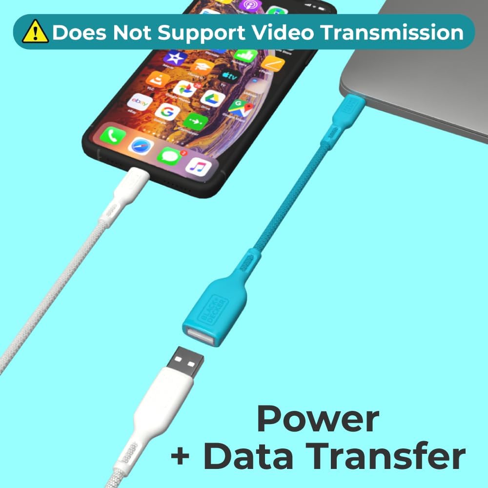 BLACK+DECKER USB C to USB A Adapter, USB C Male to USB Female Adapter Nylon Braid, Type C OTG Cable Compatible w/iPhone 16 15 Pro, Samsung S23 Ultra, MacBook Pro 2022/Air/Mini, iPad—2 Pack, 3"