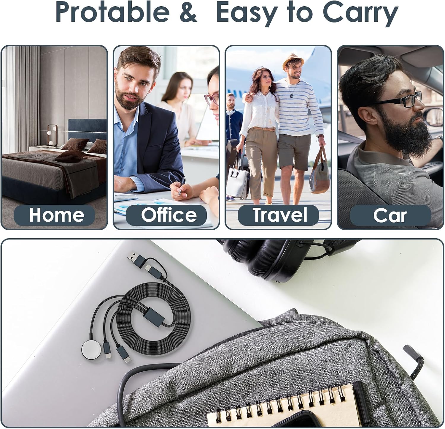 5FT iWatch Charger 3 in 2 for Apple Watch Charger Travel Essentials Multi Charging Cable Fast Charging Compatible with iWatch Series 10 /Ultra/SE/9/8/7/6/5/4/3/2/1 & iPhone 16/15/14/13/SE/Galaxy S24