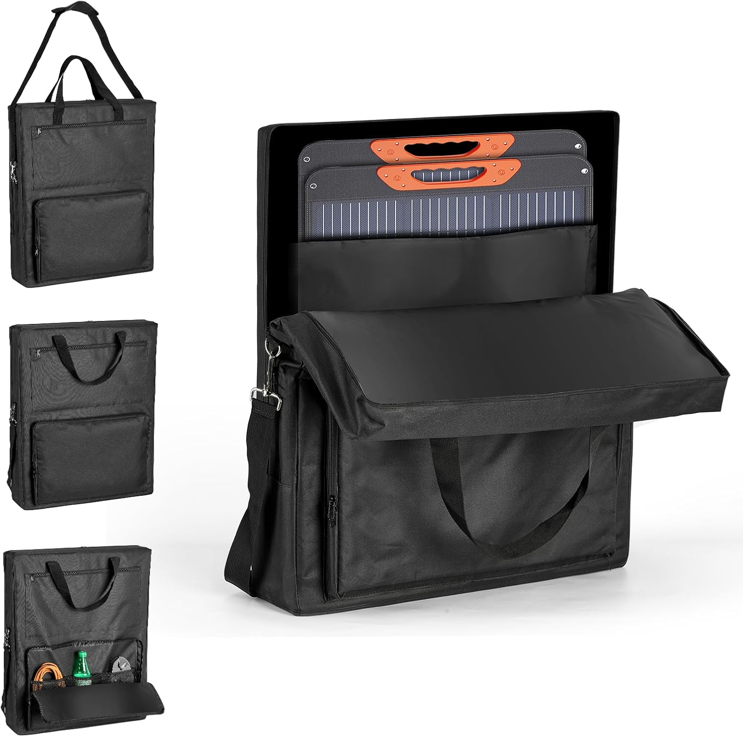- 【SUPERIOR WATERPROOF PROTECTION】 - Made from high-density waterproof oxford fabric and thick padding, this solar panel travel case shields your valuable panels from rain,bumps, scratches, and dampness during outdoor adventures.