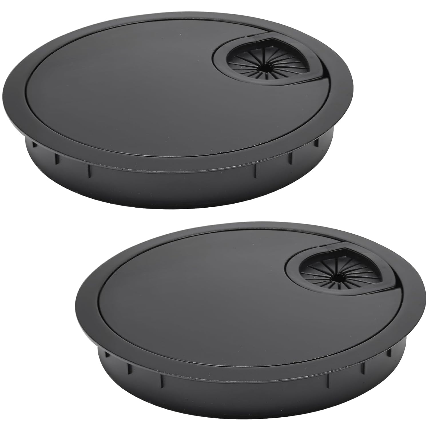 - PERFECT DESK GROMMET SET: 2 black metal desk grommets, desk hole cover for cables 3.2 inch (80 mm) diameter, 3.52 inch (88 mm) overall diameter, 0.48 inch (12 mm) height; Manual measurement, please allowed 0.01-0.1 inch error